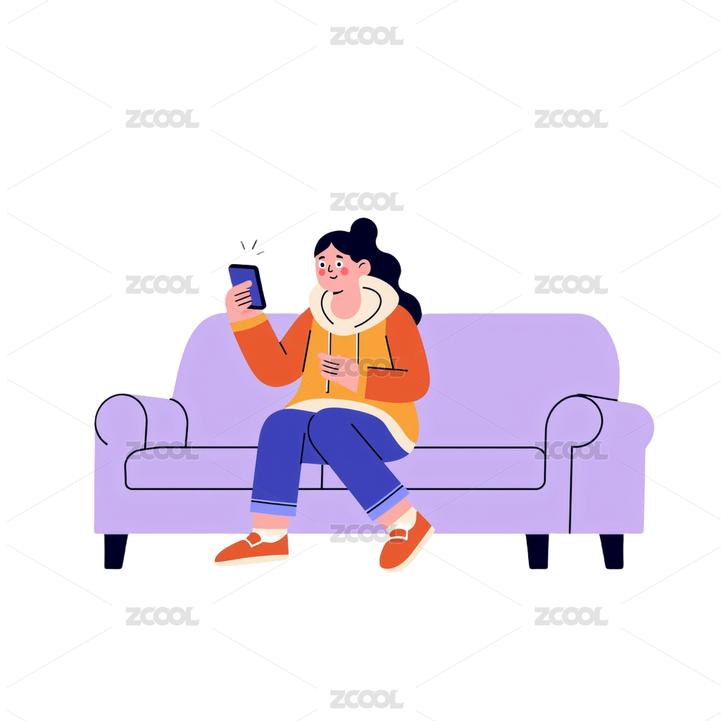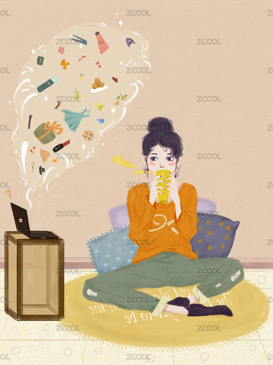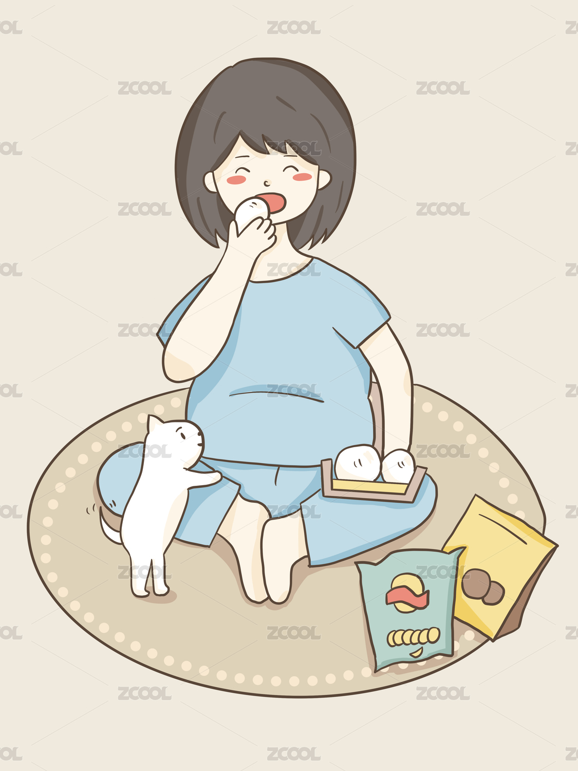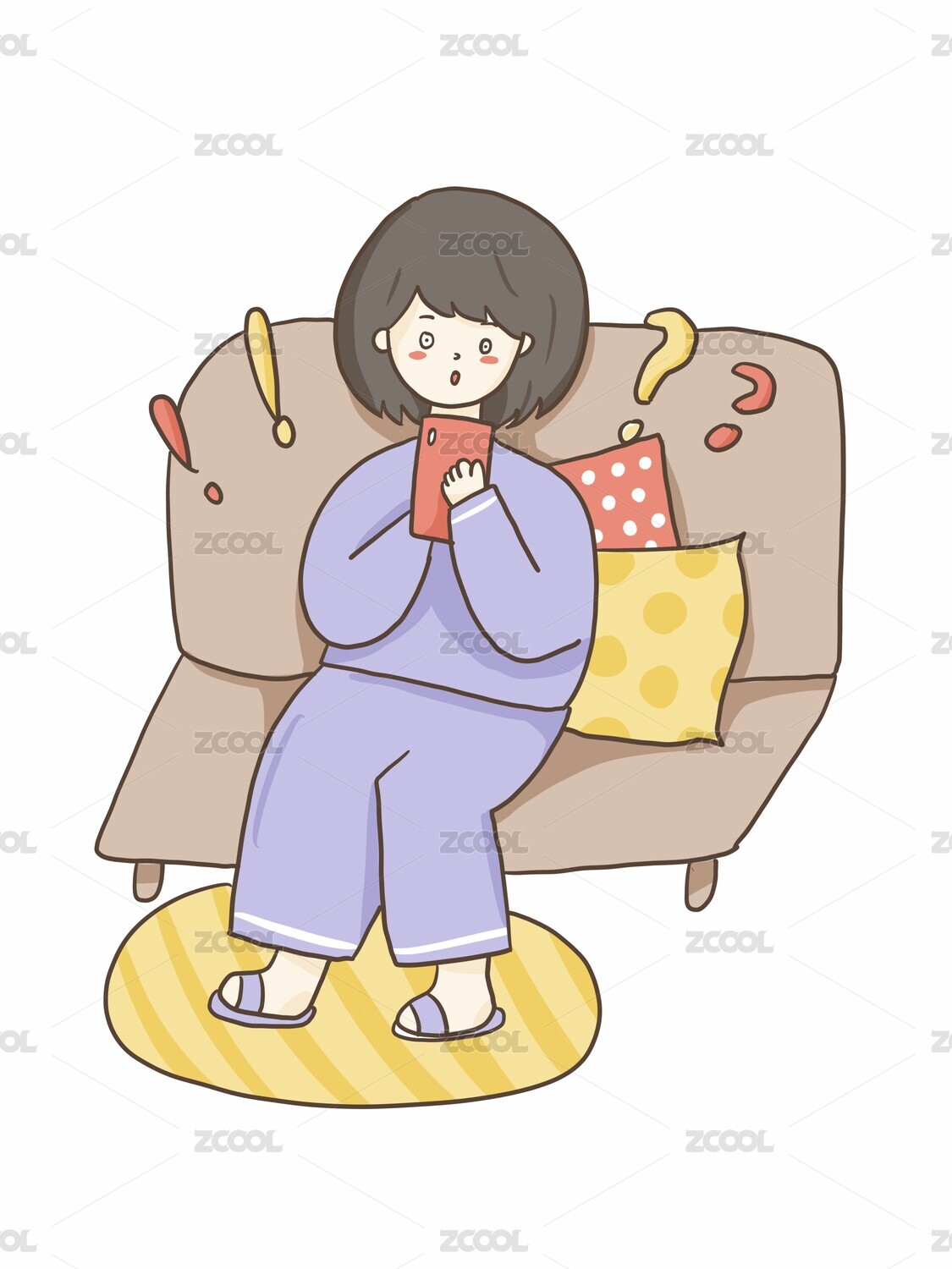插画,治愈,描边,简笔画,手绘,人,生活,可爱的,清新,女孩