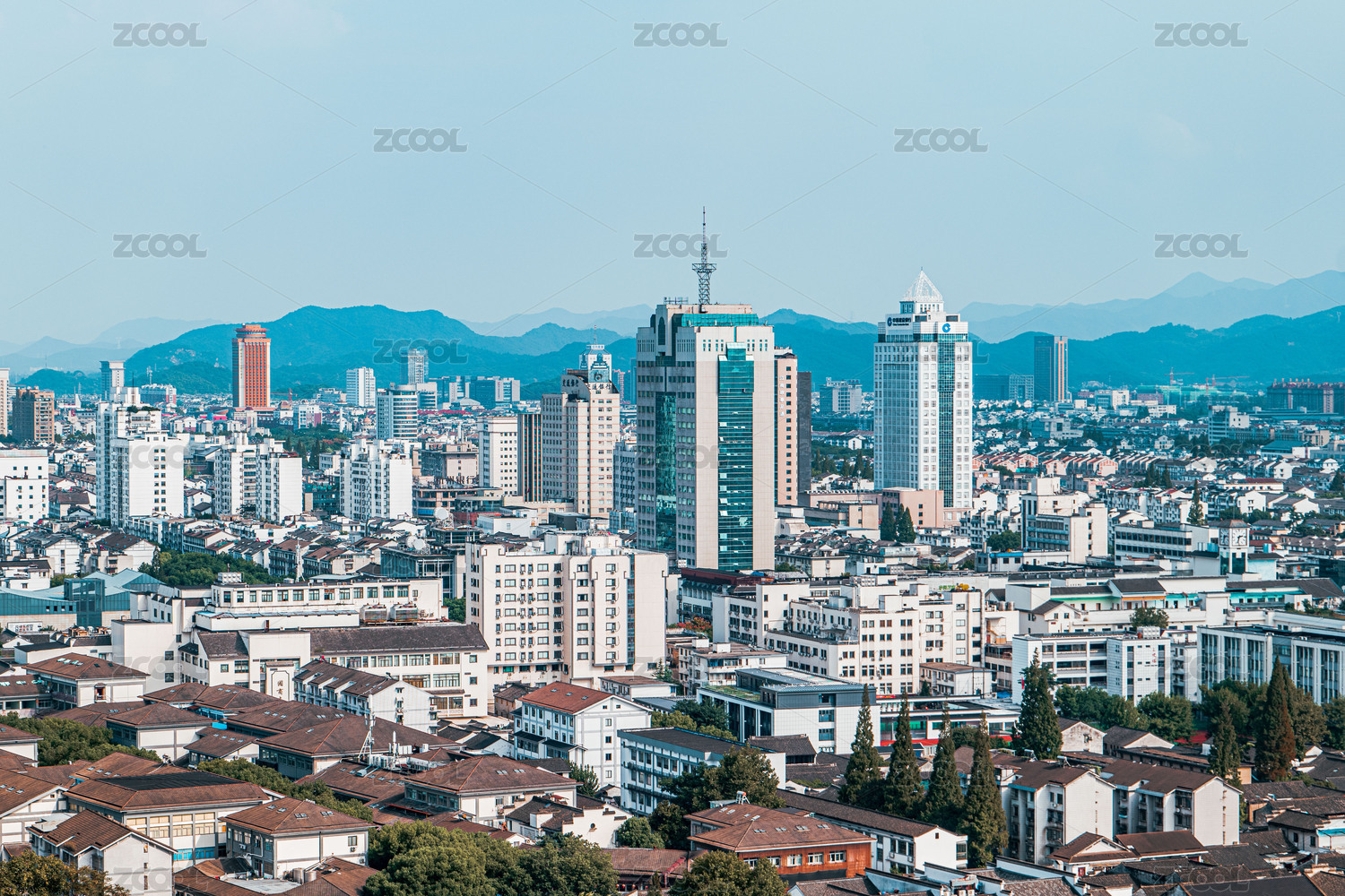 航拍浙江省台州市临海市东湖景区紫阳古街