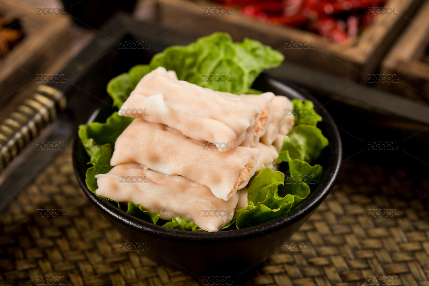 放在黑色碗里的美味食材——火锅虾饺