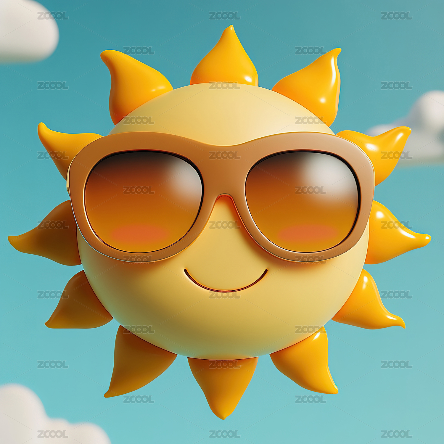 带着墨镜的卡通太阳形象C4D