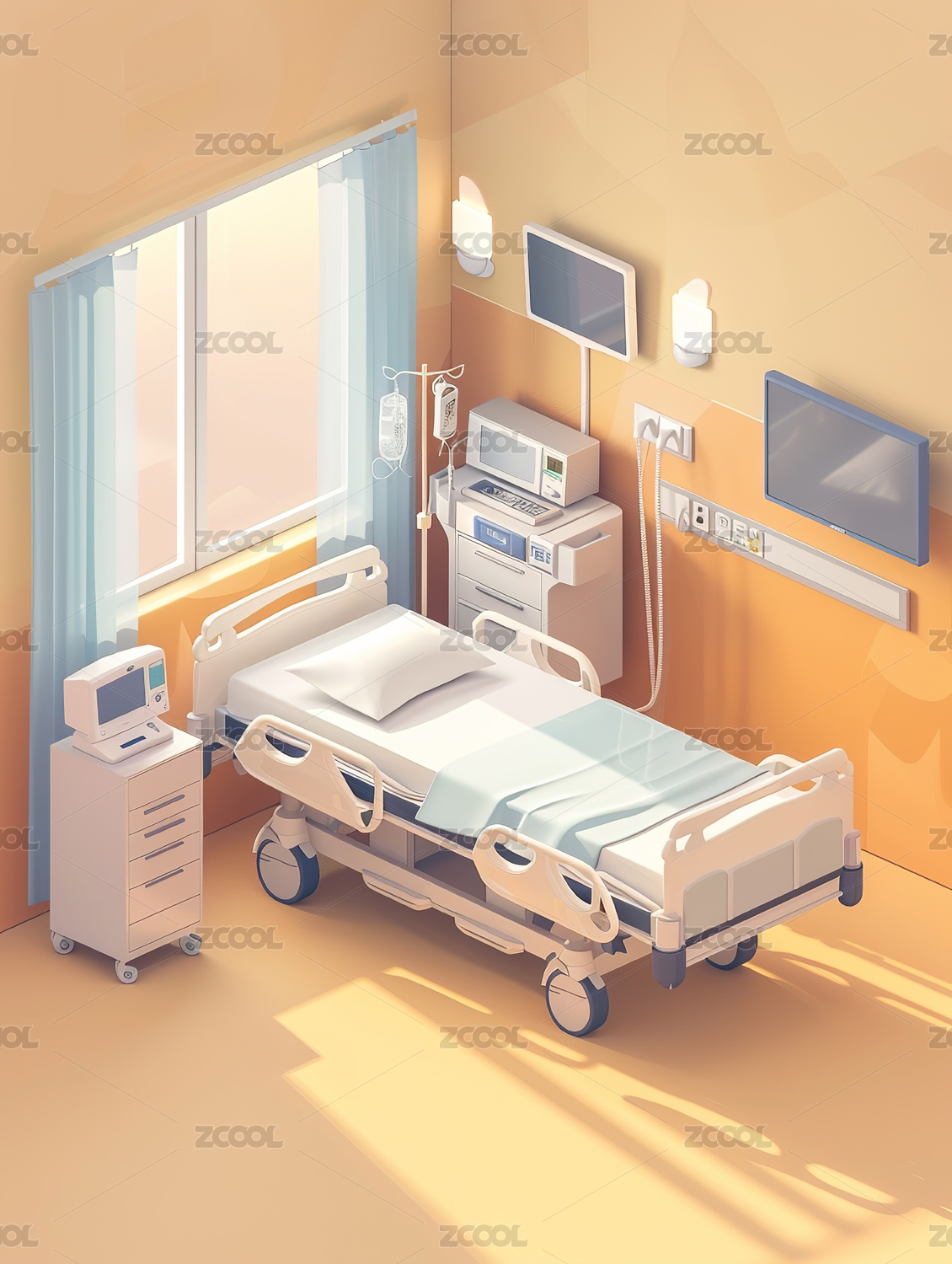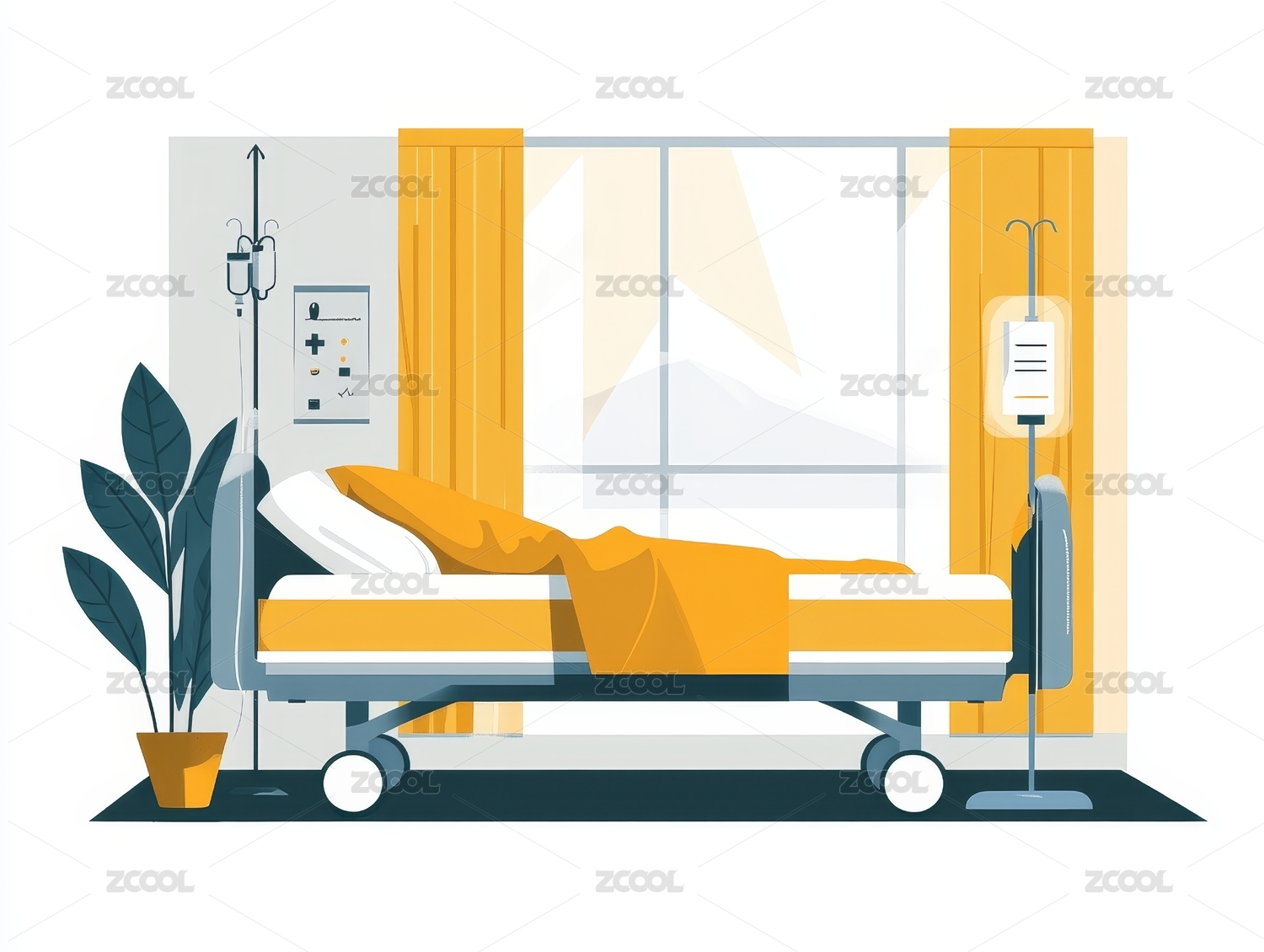 病床,病房,室内,轮子,吊瓶架,吊瓶,输液,温馨,简约,配色