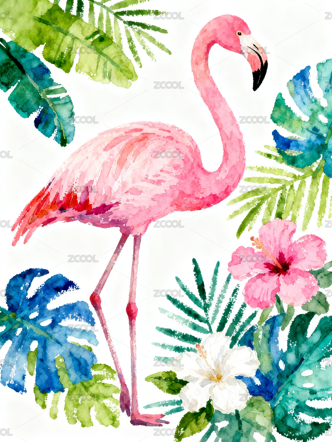 火烈鸟热带植物组合图案