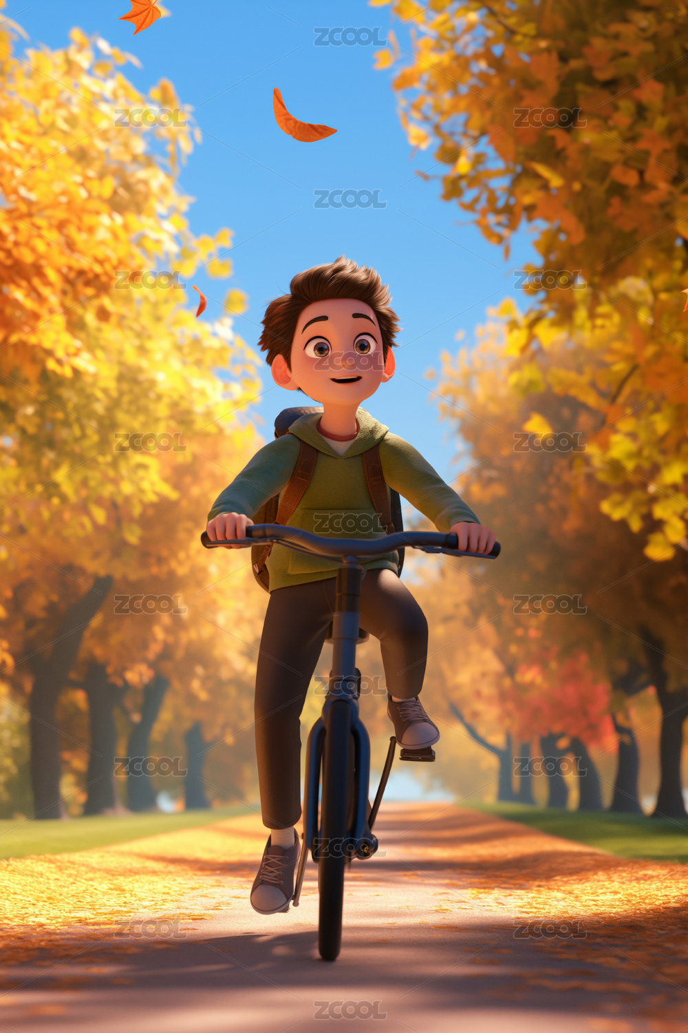 自然,树木,风景,清新,道路,健康,卡通,动画,快乐,落叶