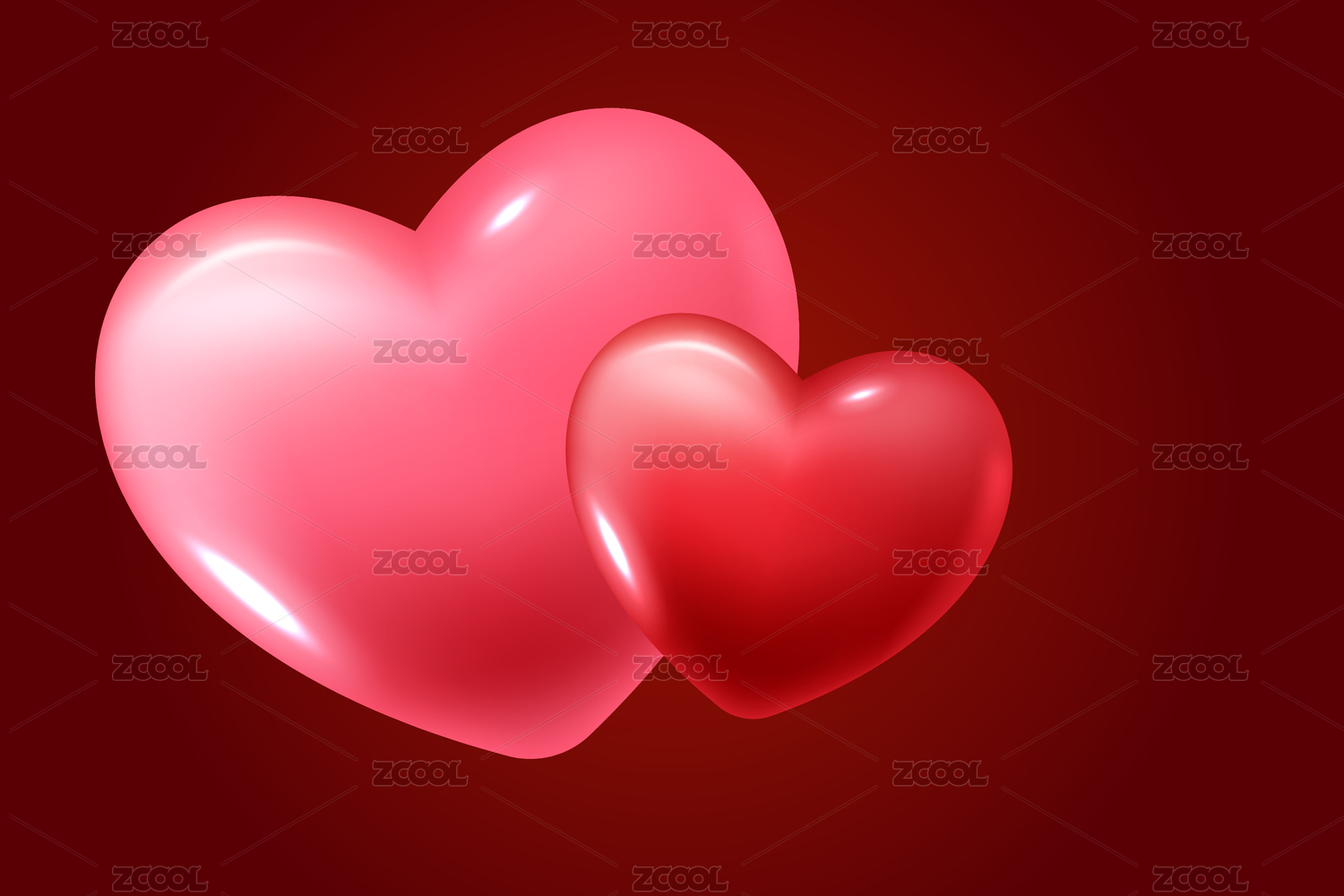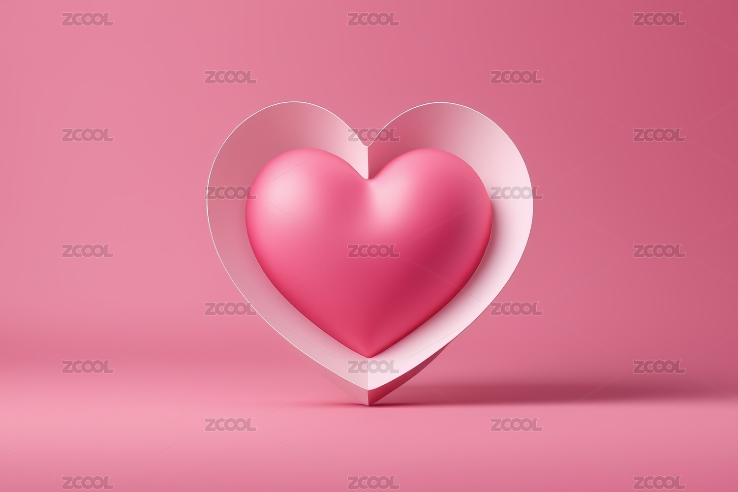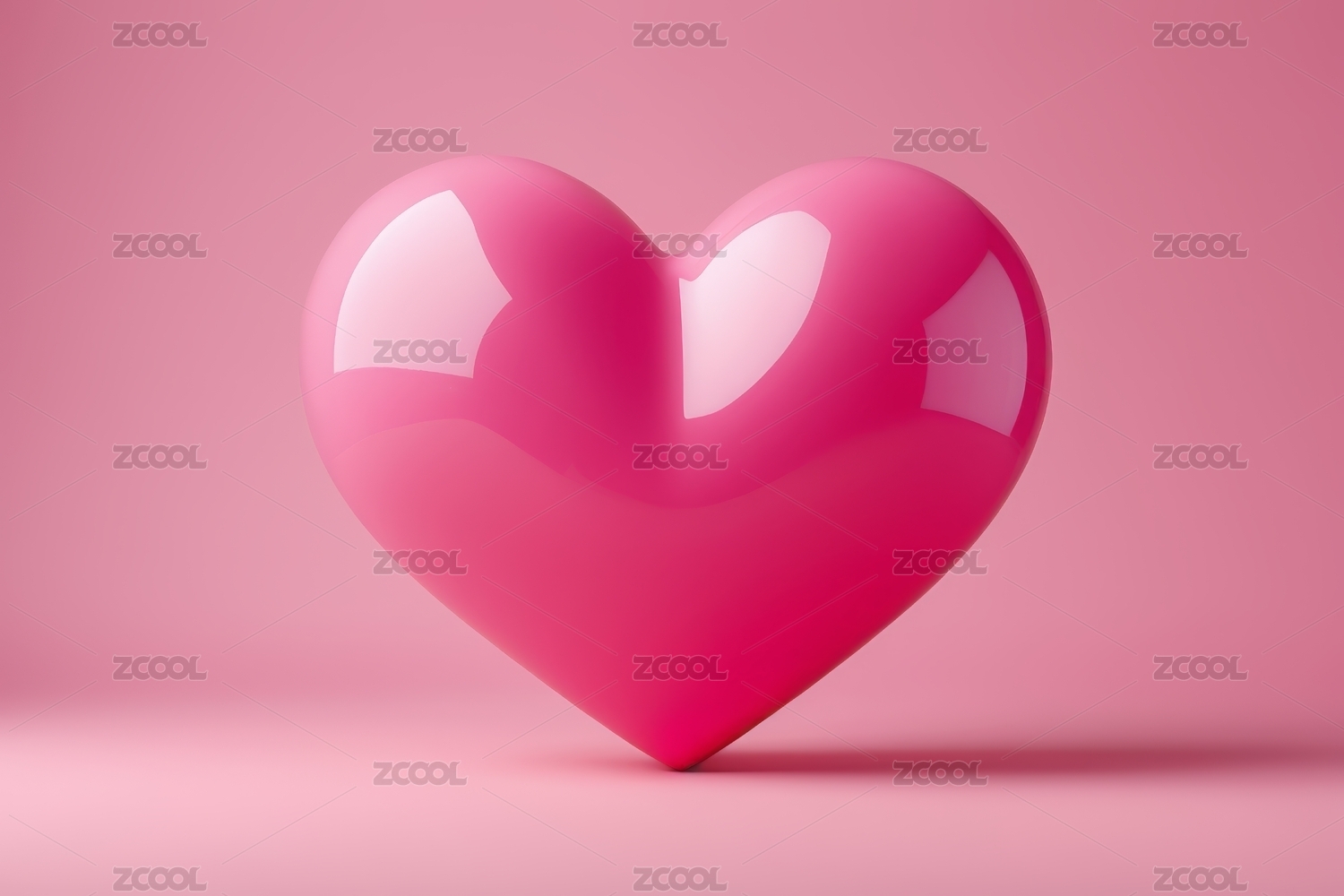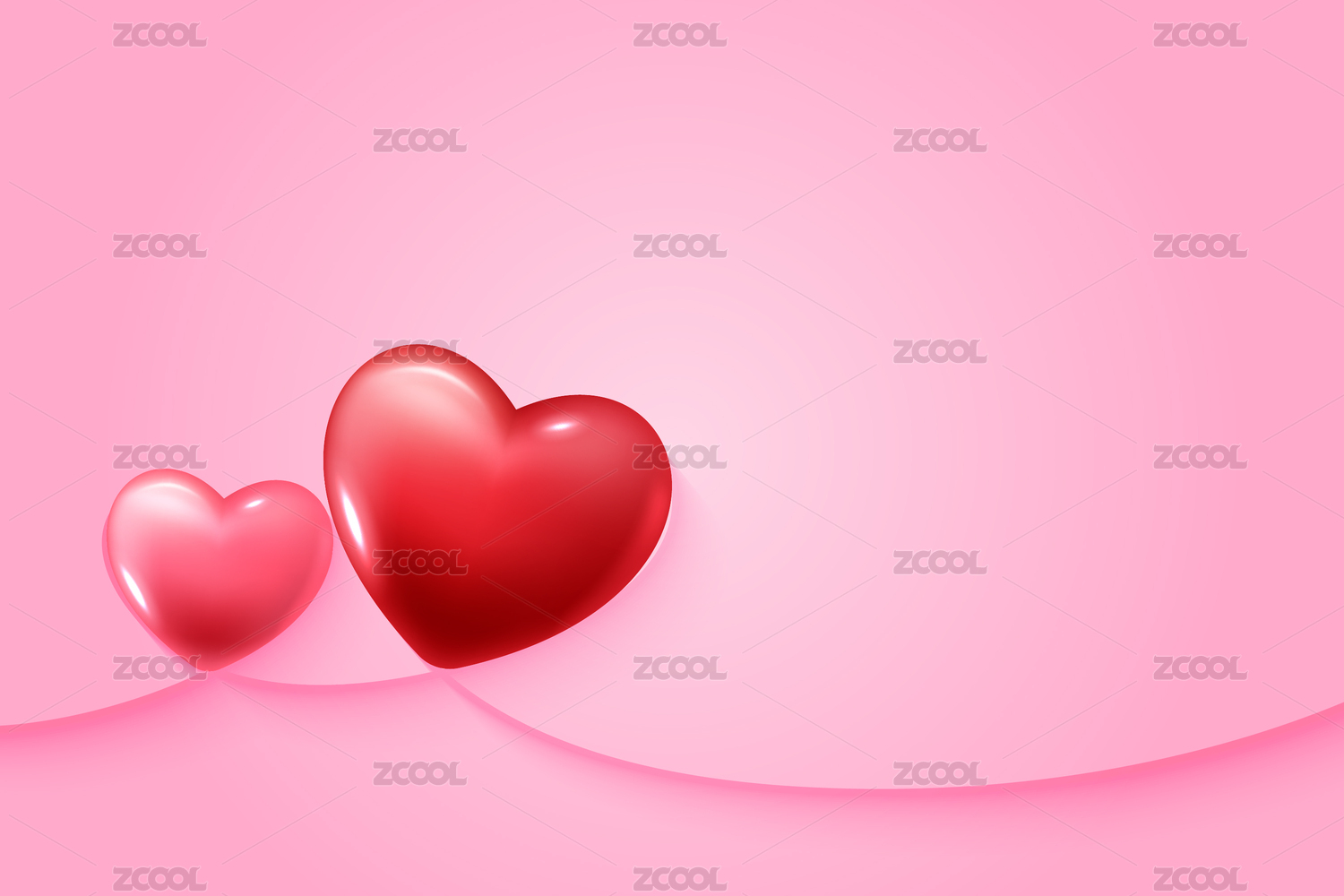 一颗红心特写镜头粉红色背景上有三颗较小红