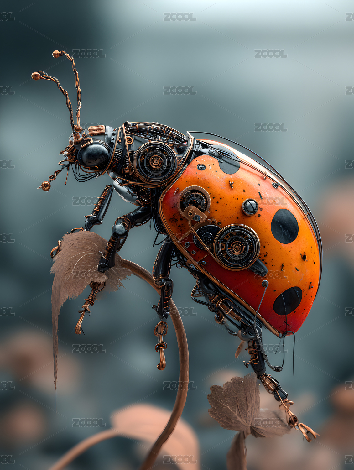 机械瓢虫秋叶栖息