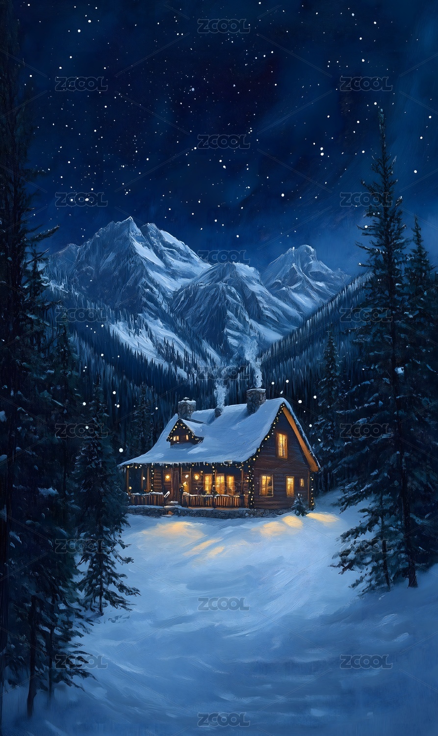 冬日,冬天,圣诞,雪地,彩灯,圣诞树,房子,特写,背景