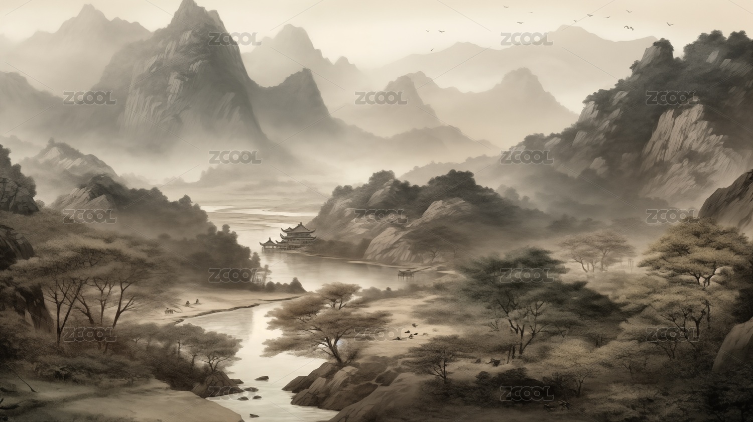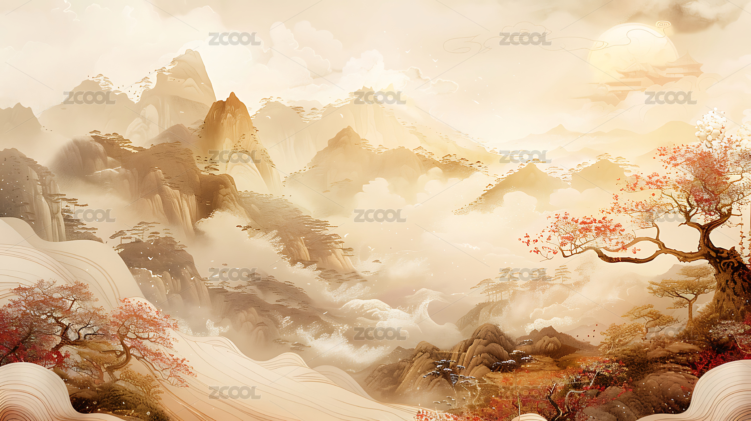 点画表现主义建筑群艺术插图抽象背景装饰画