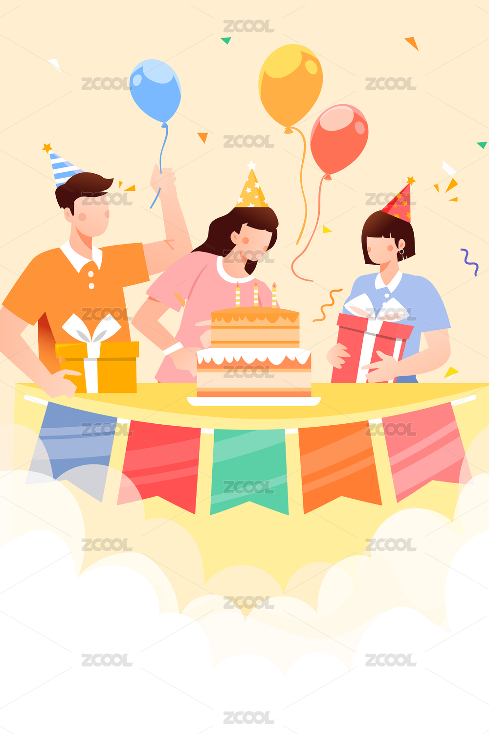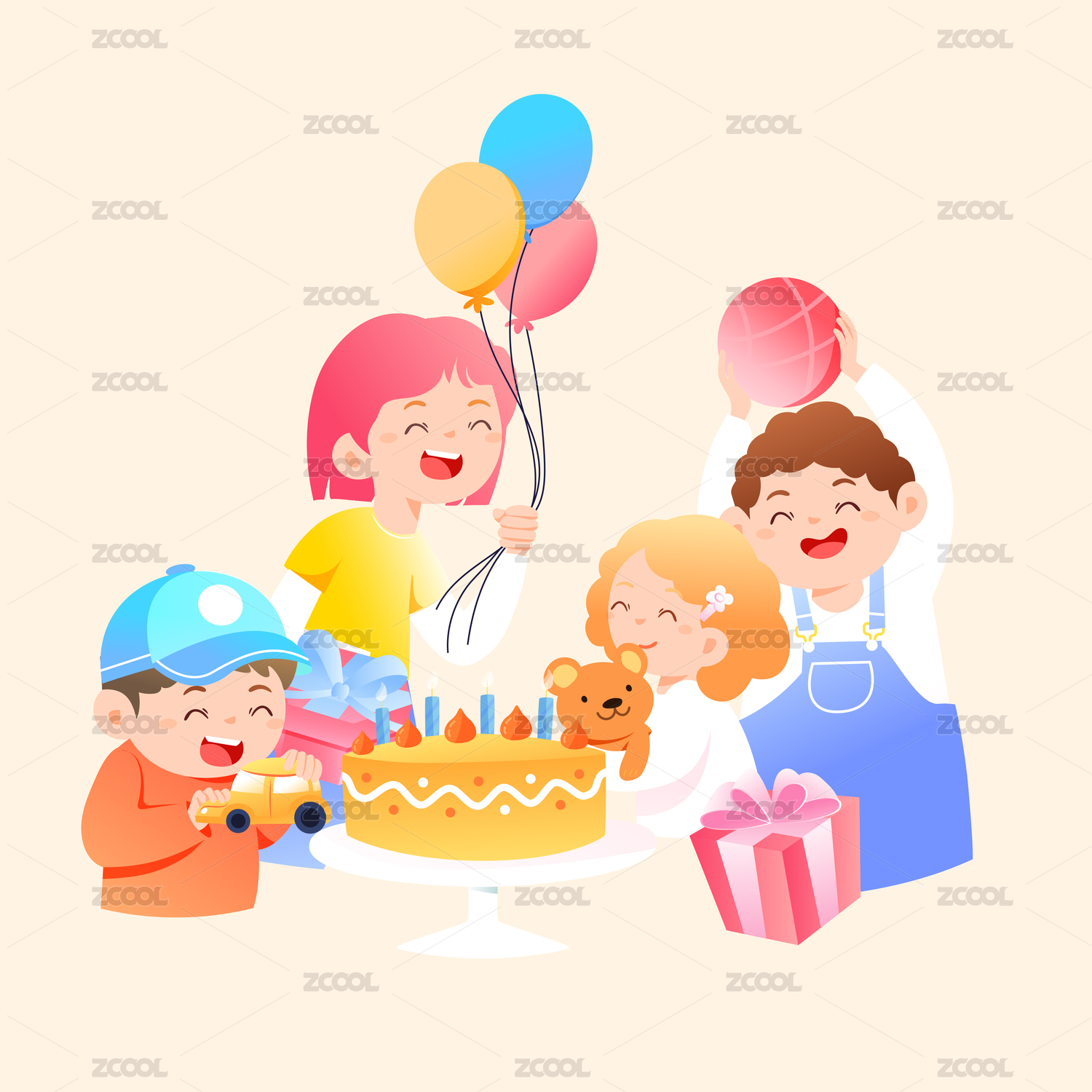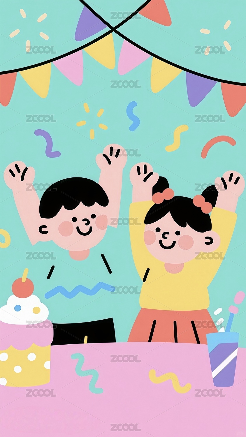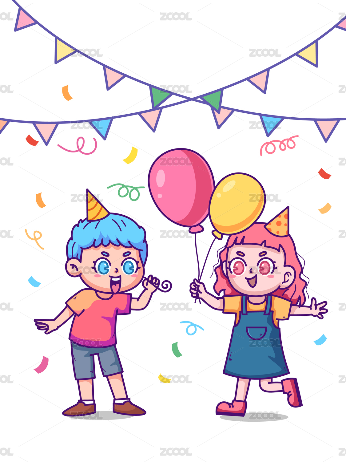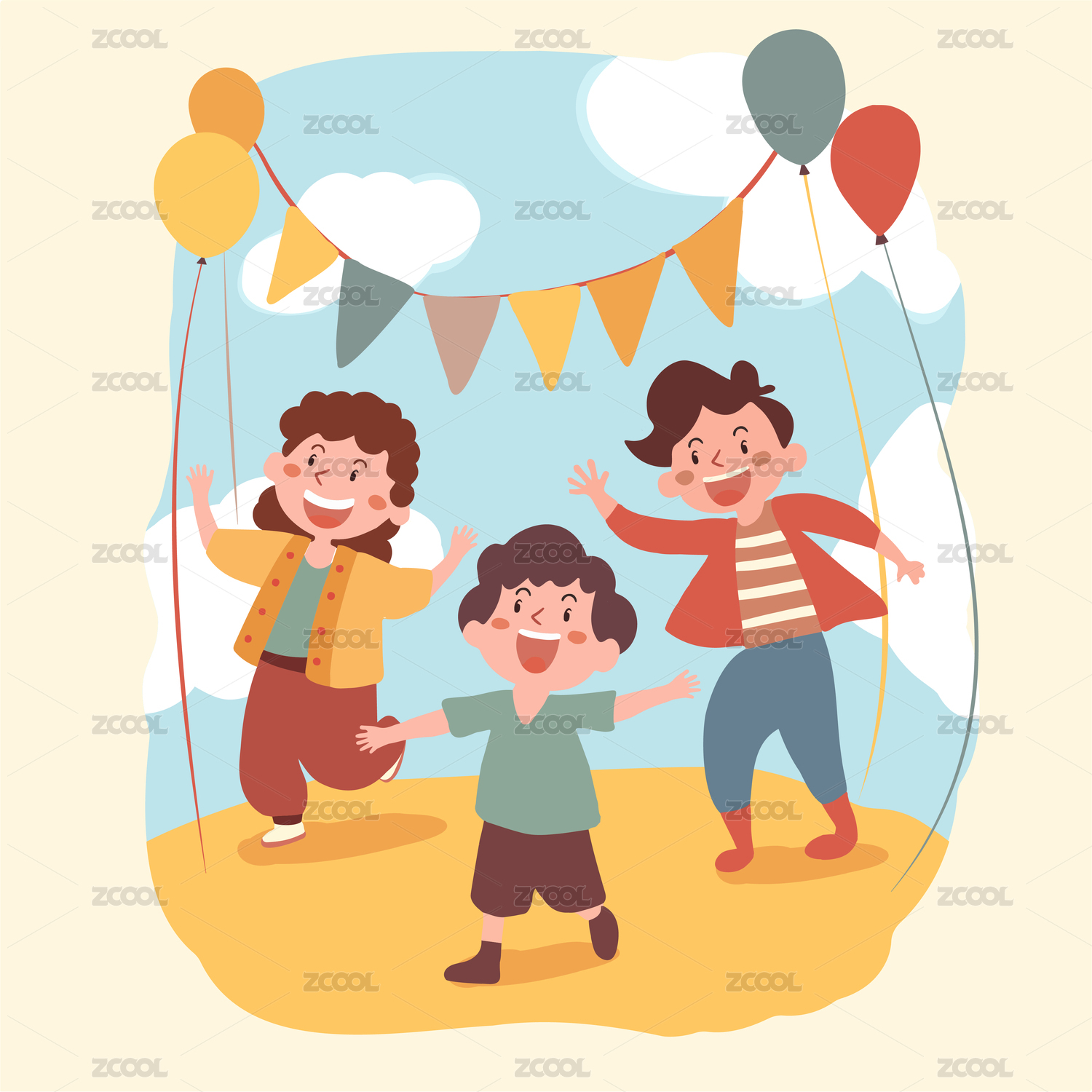 矢量插画黄色条纹庆祝背景男孩女孩庆祝玩耍