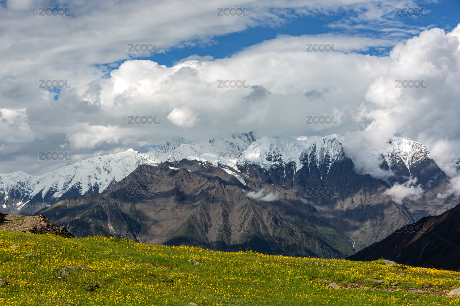 贡嘎山西坡子梅垭口钙华坡及贡嘎主峰