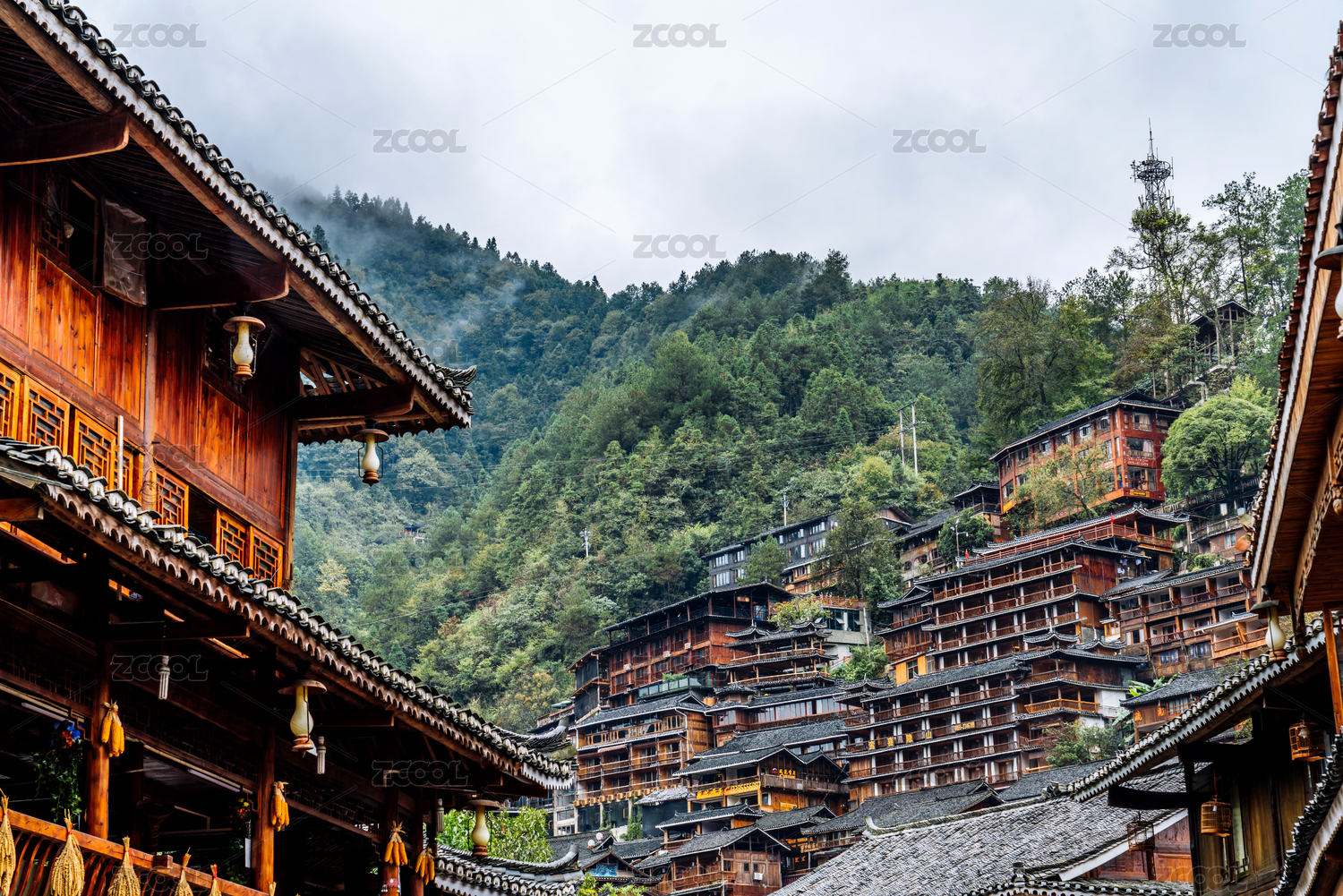 贵州省黔东南州雷山县西江千户苗寨层叠的房