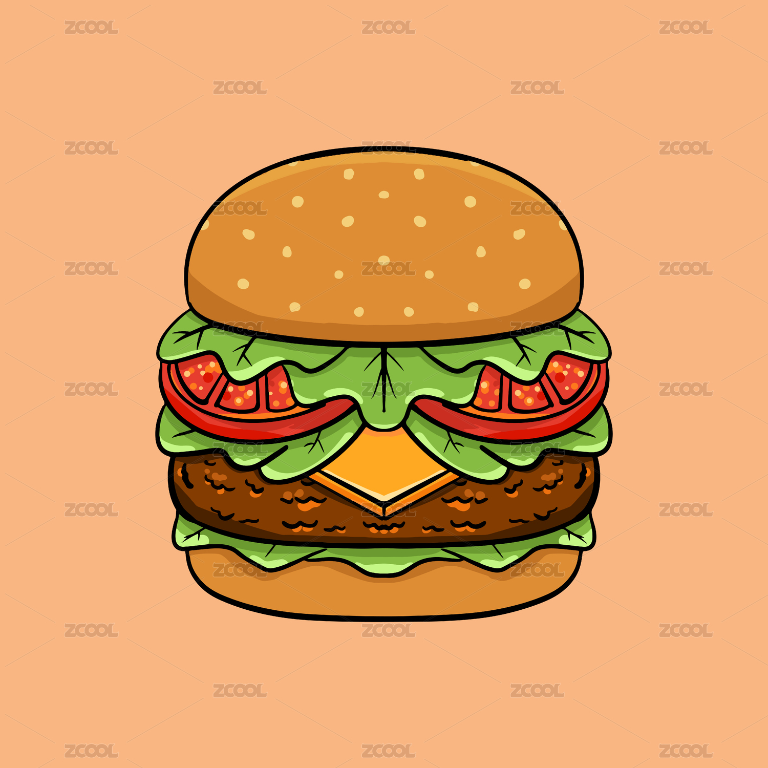 手绘卡通汉堡快餐食物矢量餐饮插画