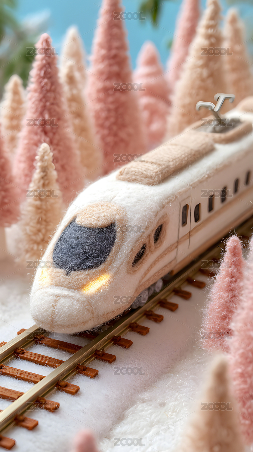 毛毡,毛绒,3D,立体,场景,微缩,微缩景观,等距,火车,列车