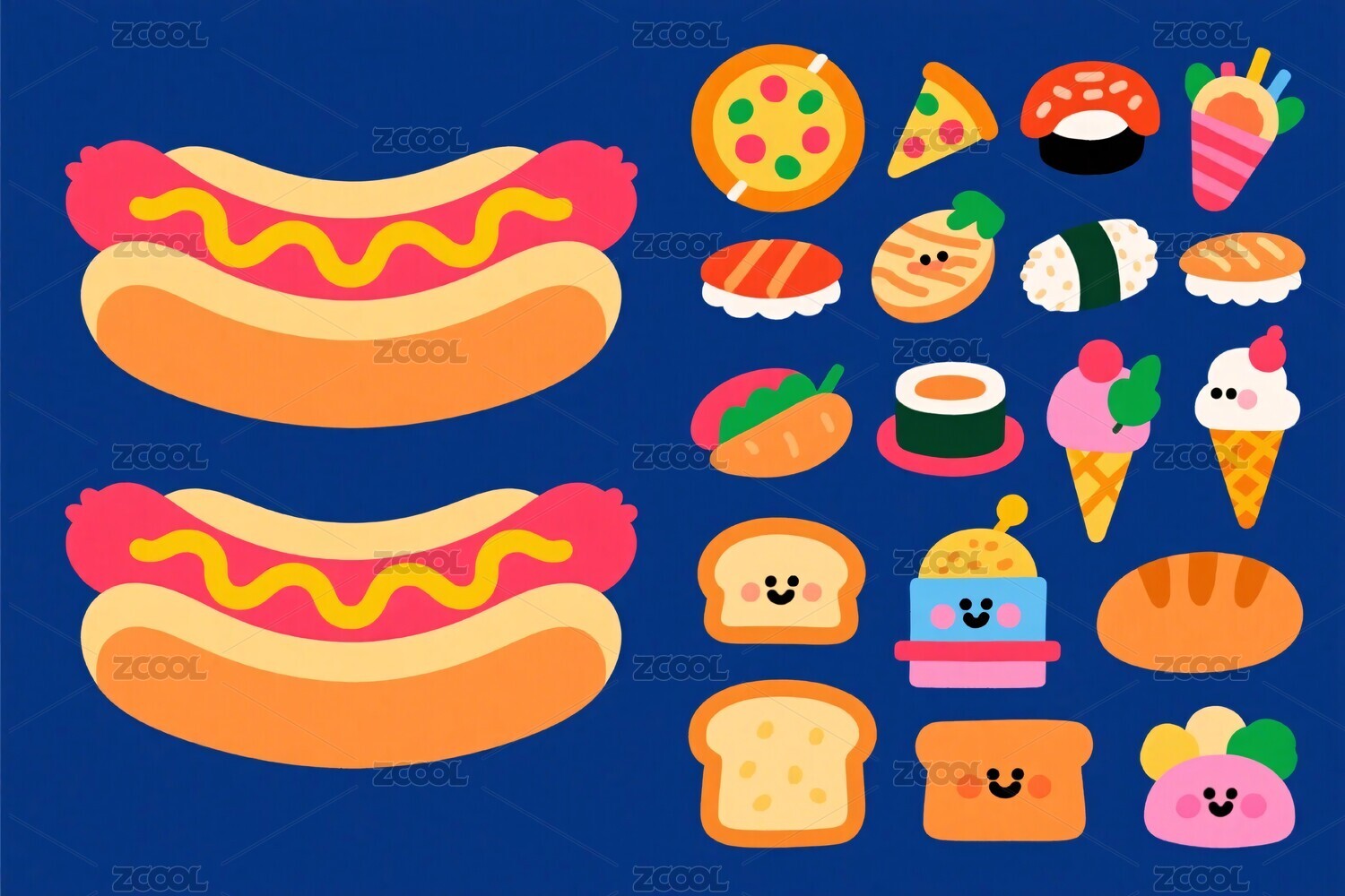 卡通美食集合温馨质感画面
