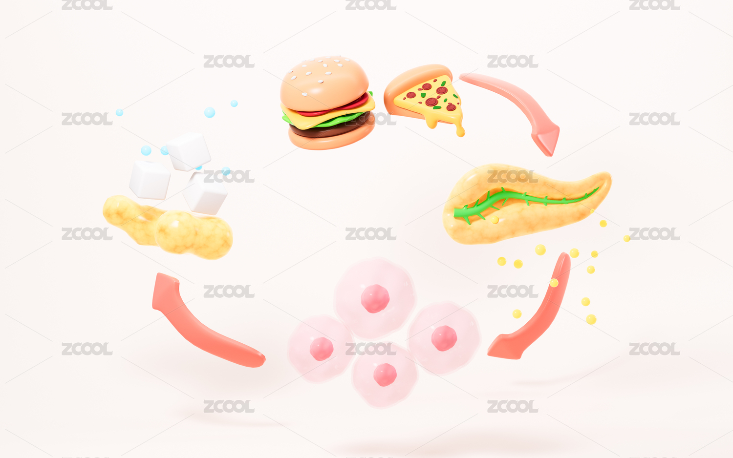饮食与胰岛素分泌胰岛素抵抗概念图3D