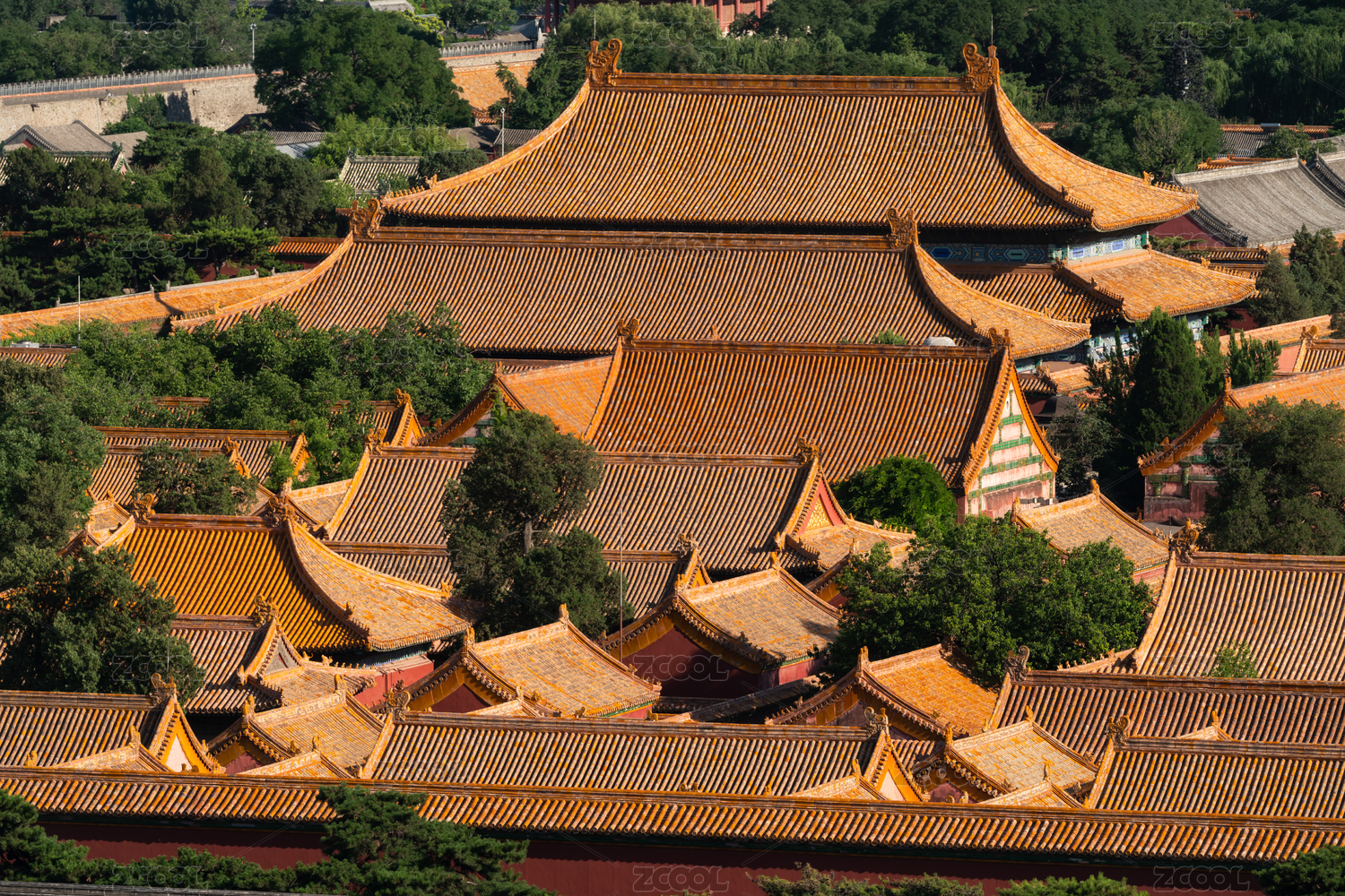 秋天蓝天下的北京颐和园公园的亭台楼阁古建筑