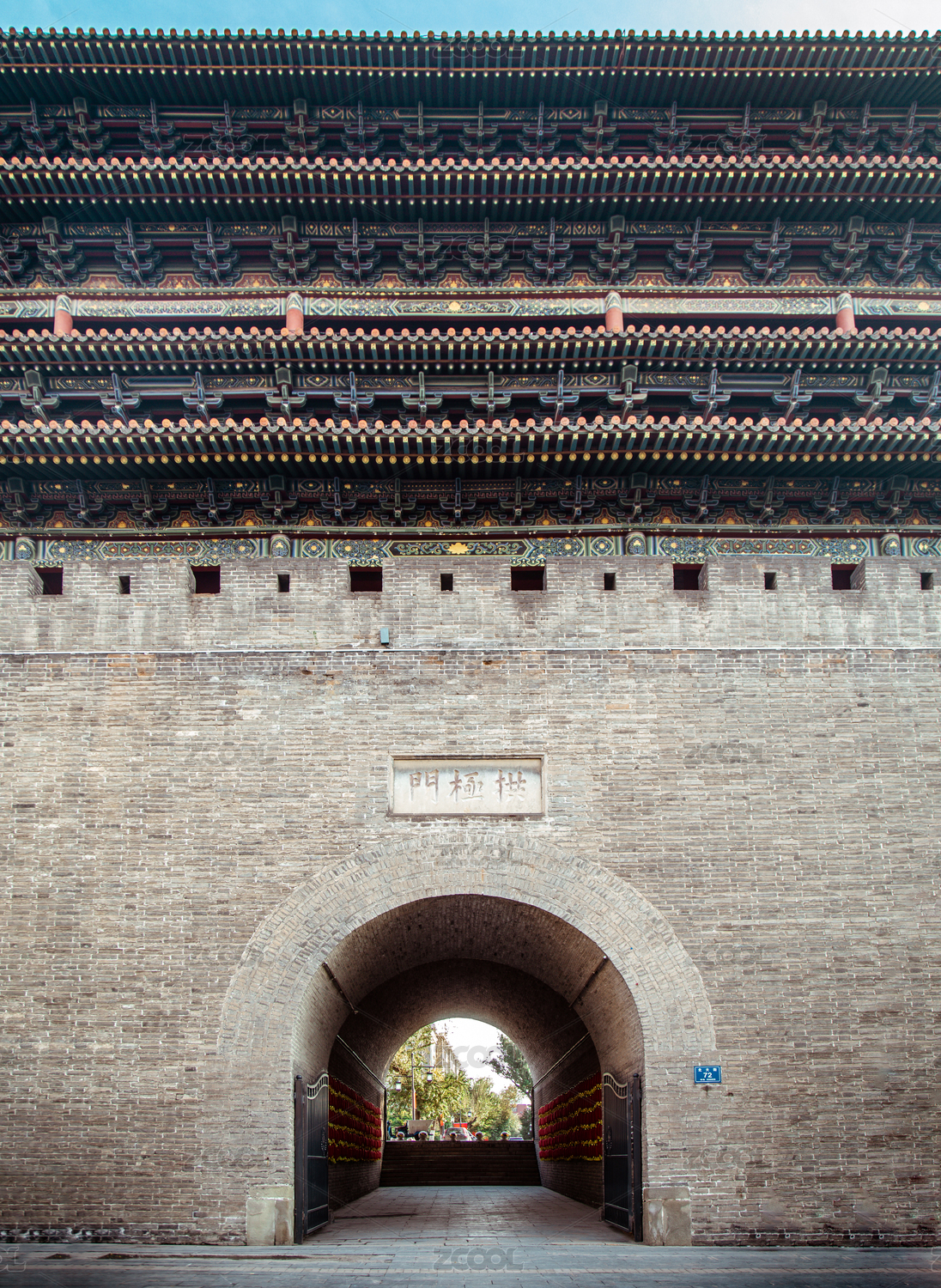 北京永定门打开的城门和门洞