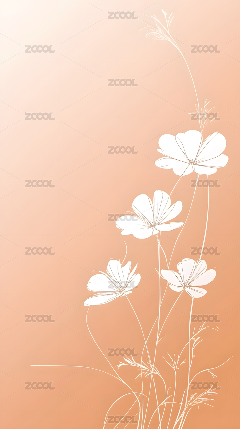 浅橙色背景白色花朵