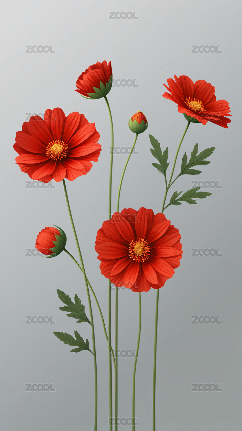 手绘春天红色格桑花植物花卉水彩插画
