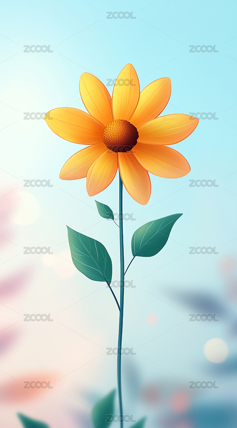 简约风背景上的黄色花朵