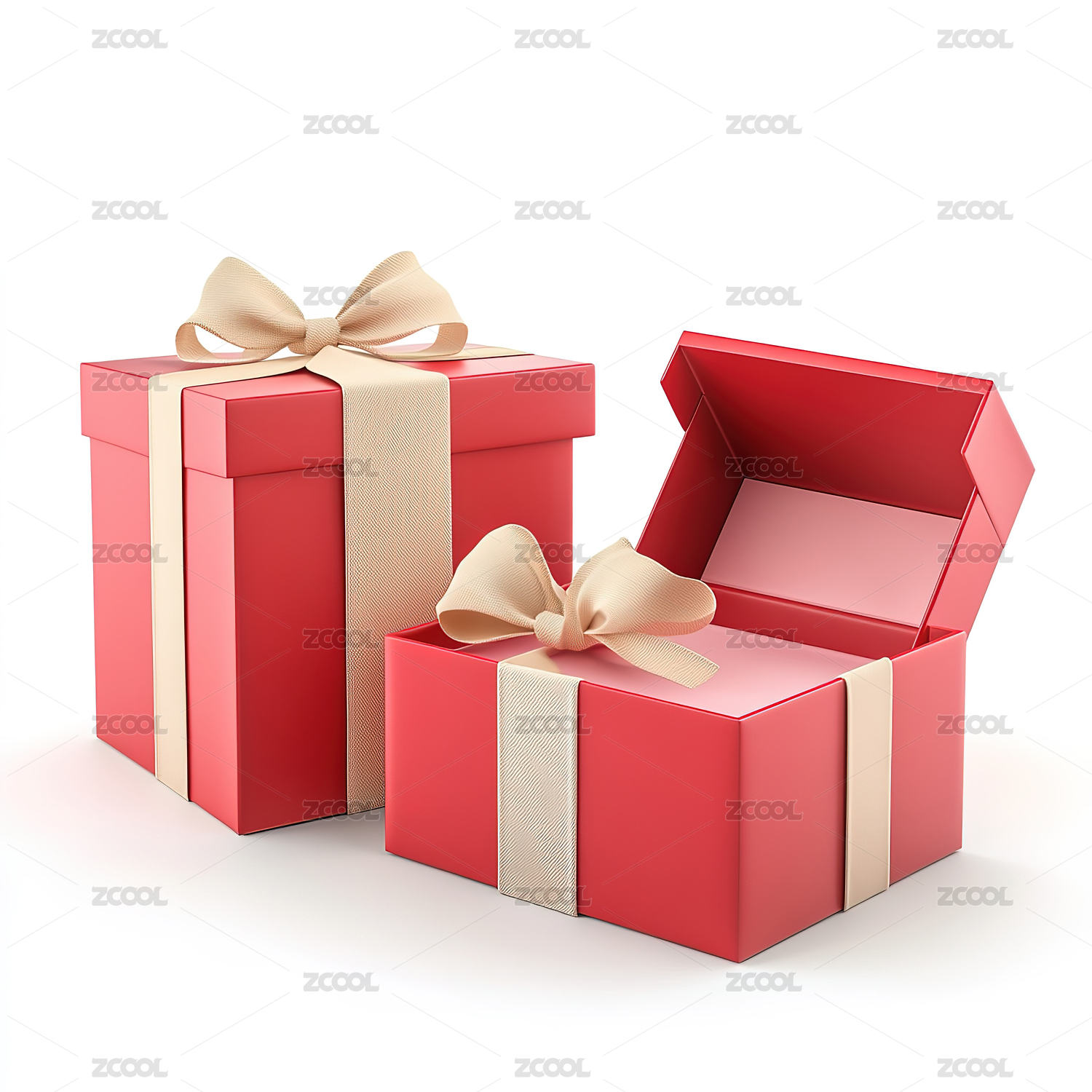 红色礼物盒,金色丝带,蝴蝶结,白色背景,精致,节日化,圣诞节,特殊场合,礼物,气氛