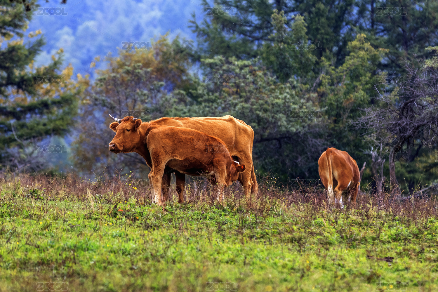 秋天,黄牛,牛,奶牛,黄叶,草地,山地