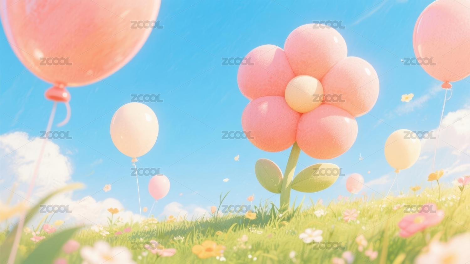 气球花朵梦幻感户外场景
