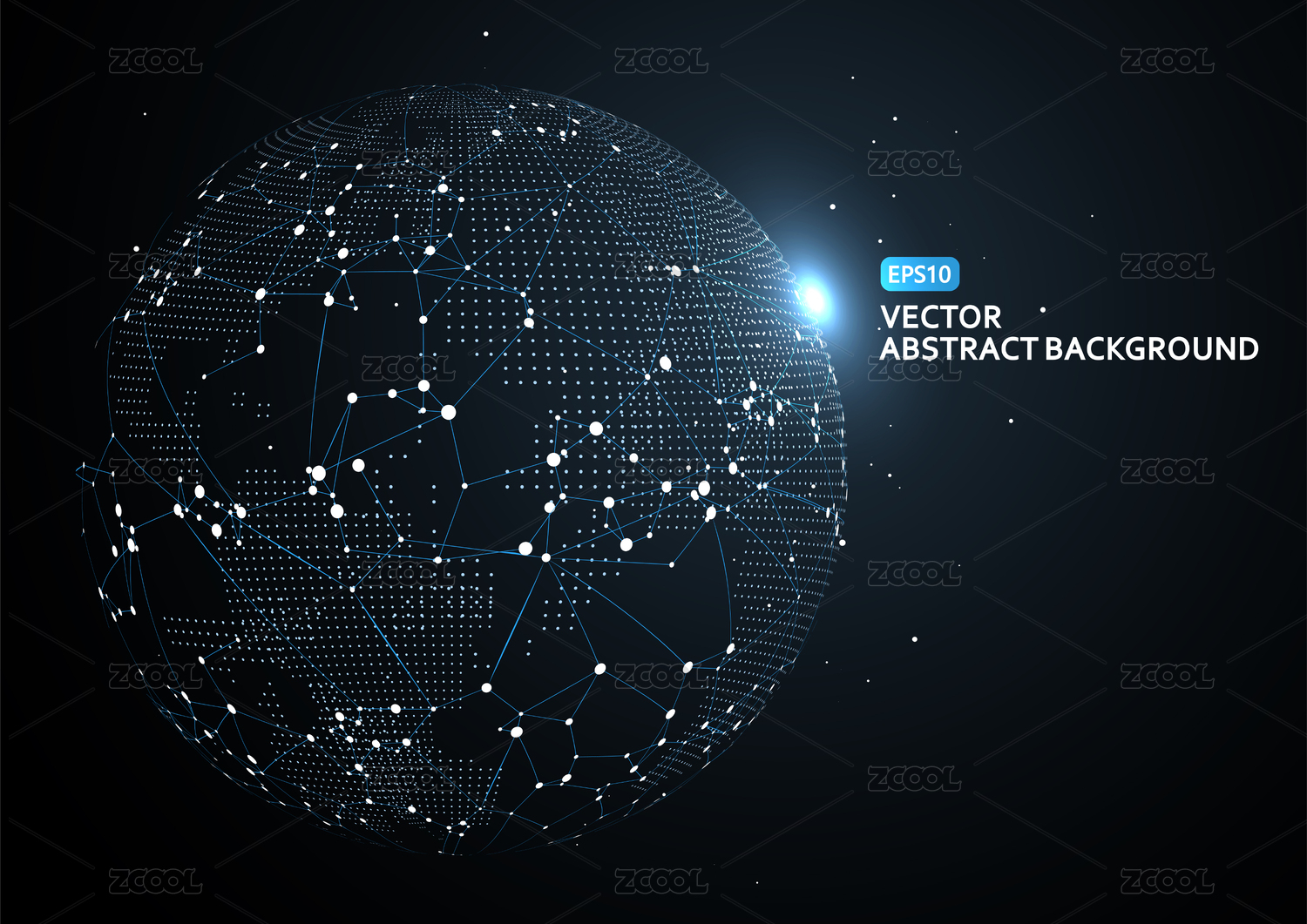 粒子、点线链接组成发光球体科技背景,科技效果的矢量元素