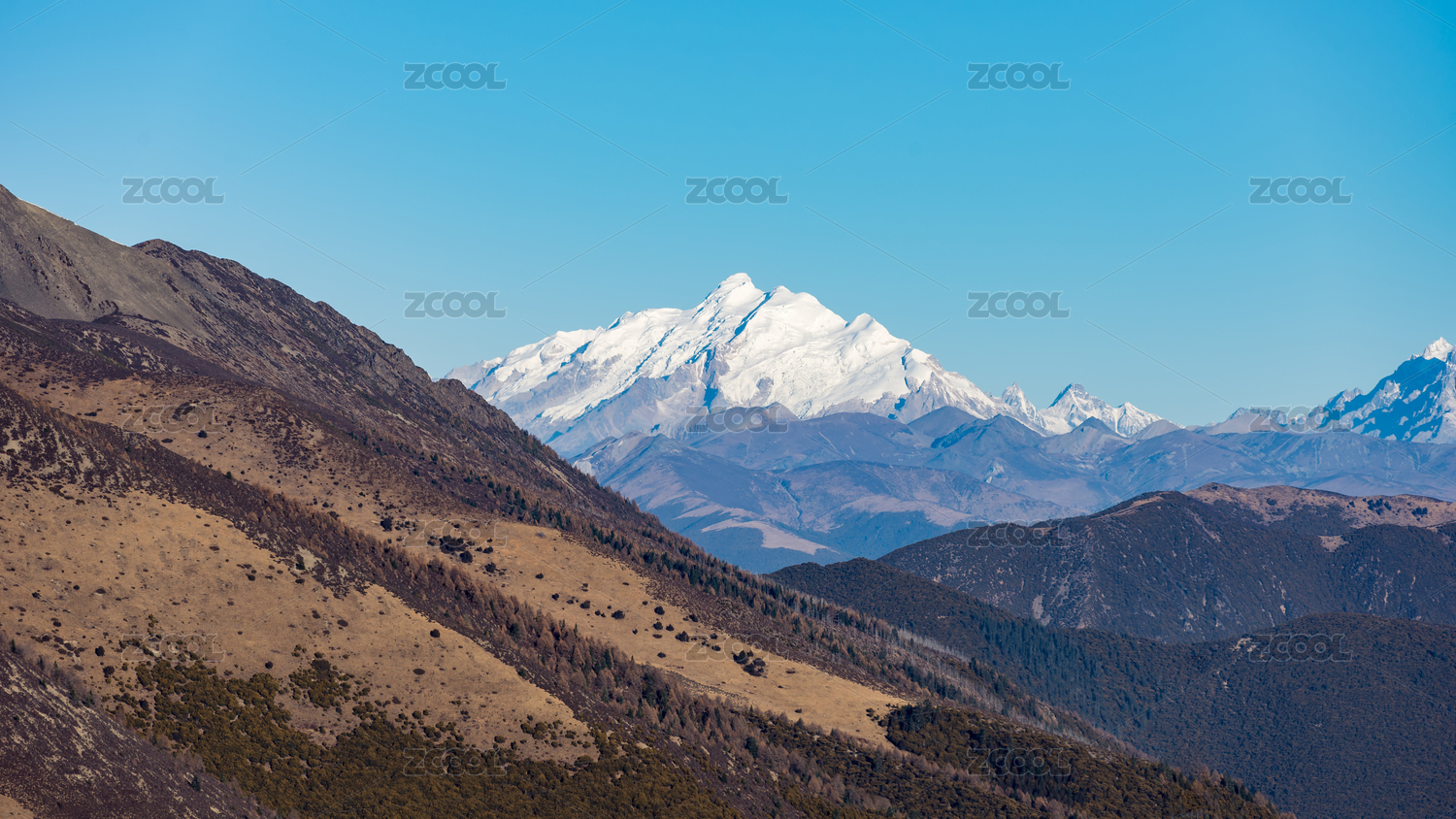 冬季在中国四川猫鼻梁观四姑娘山与幺妹峰