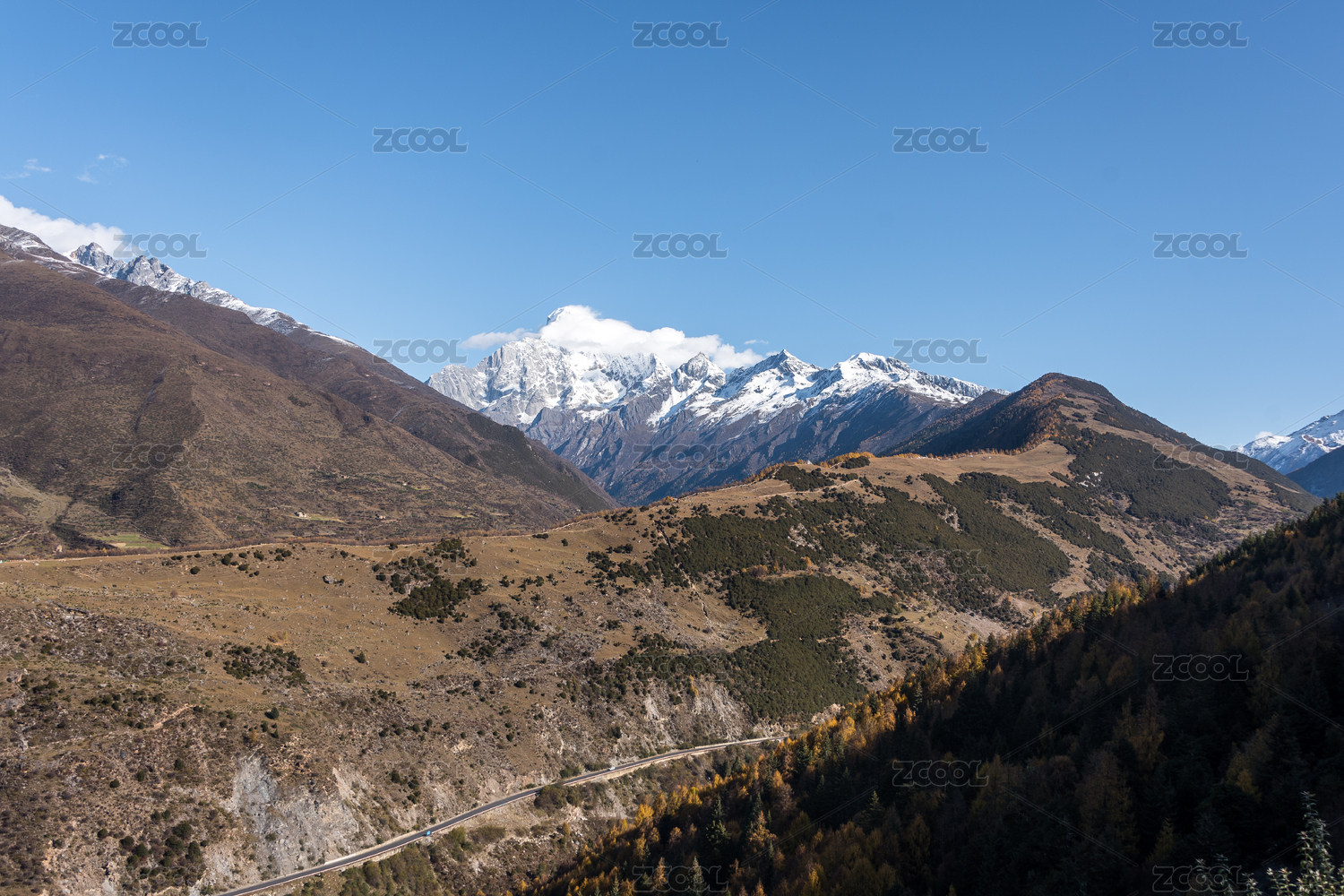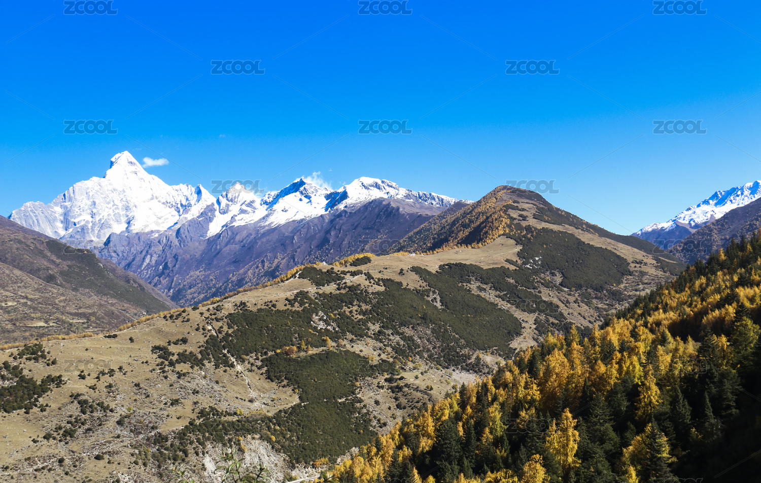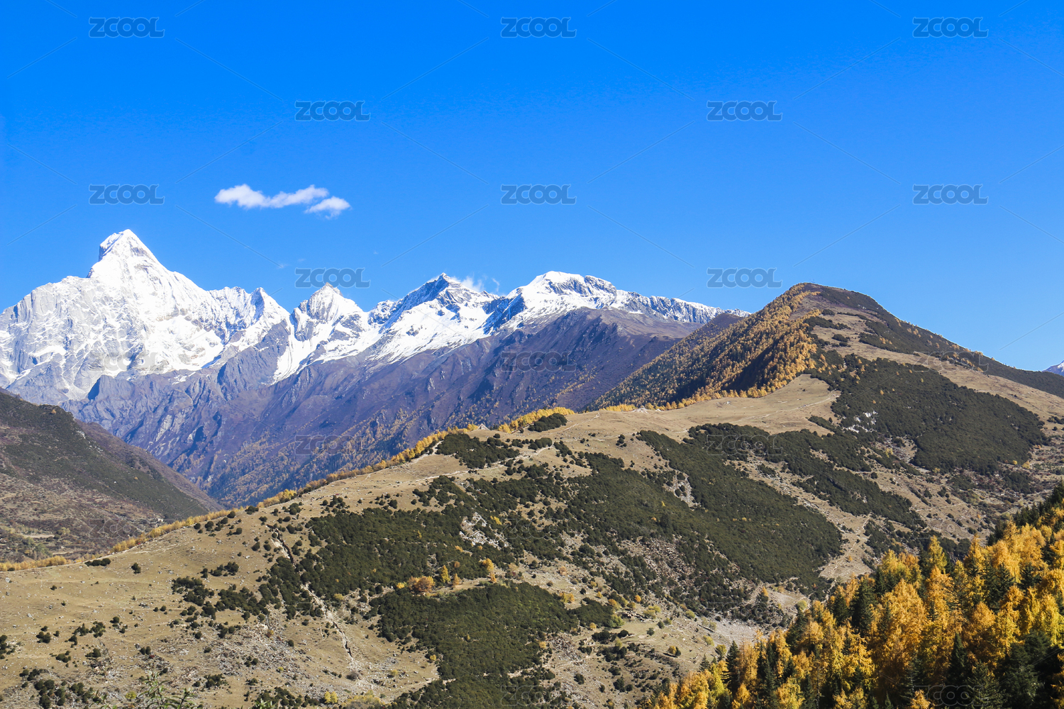 四川甘孜藏族自治州四姑娘山双桥沟秋季雪山彩林美景