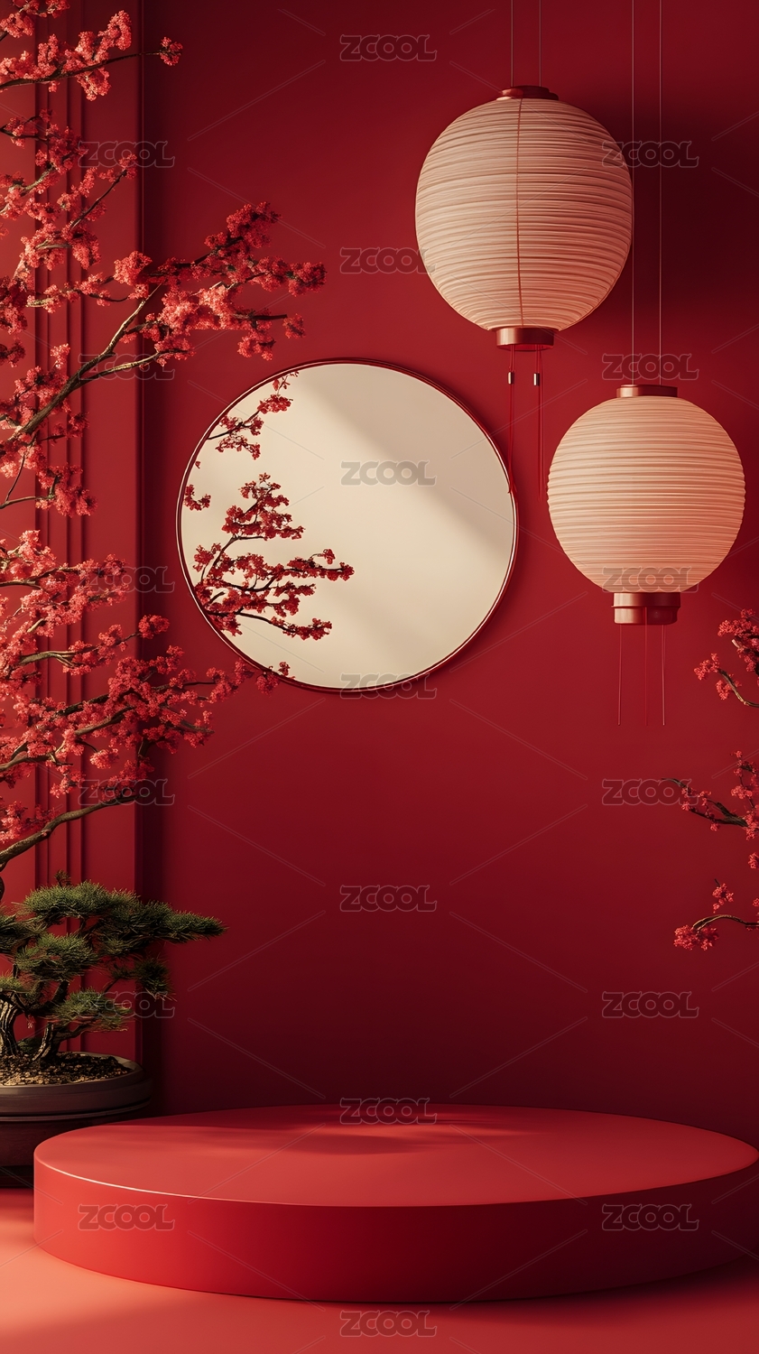 新年,喜庆,红色,圆形,c4d,电商,展台,灯笼,背景,DXCZ202402