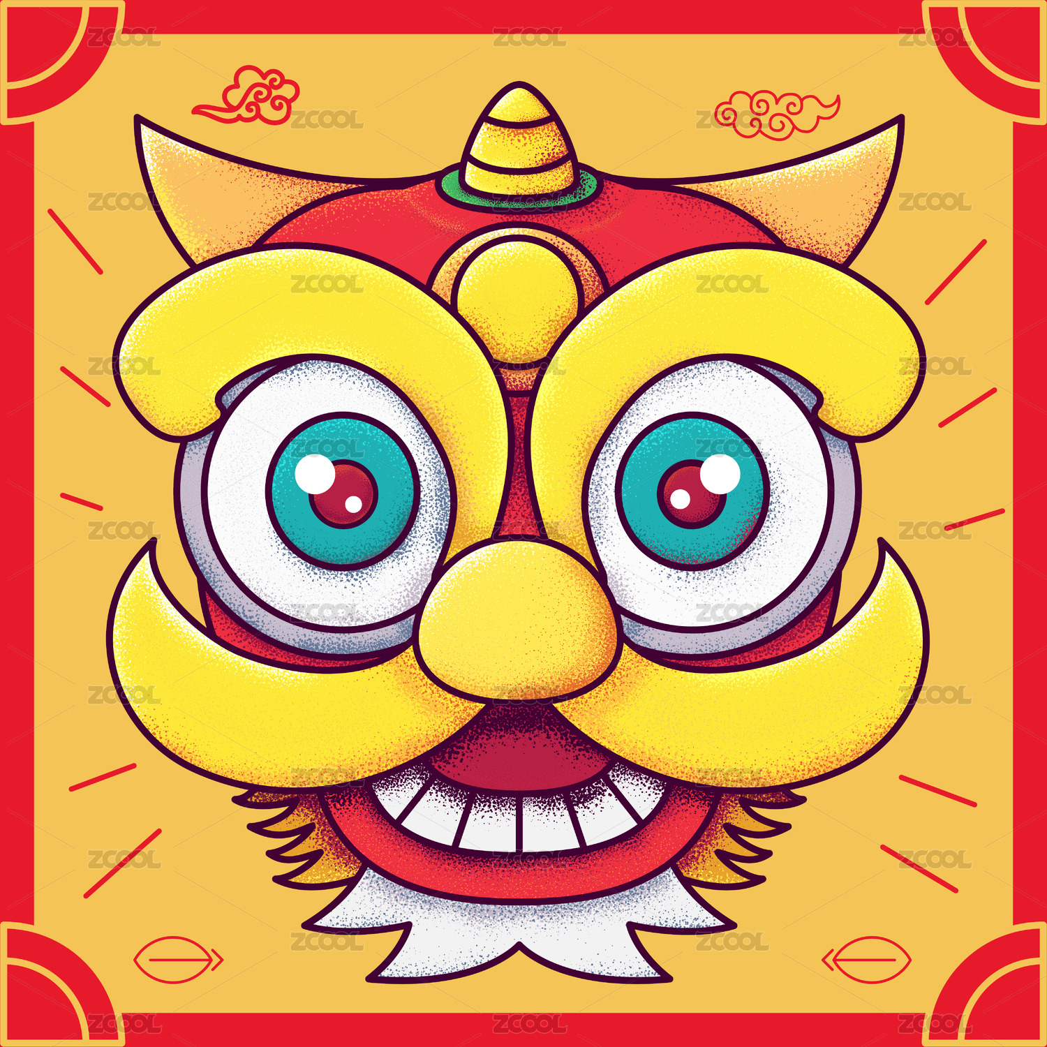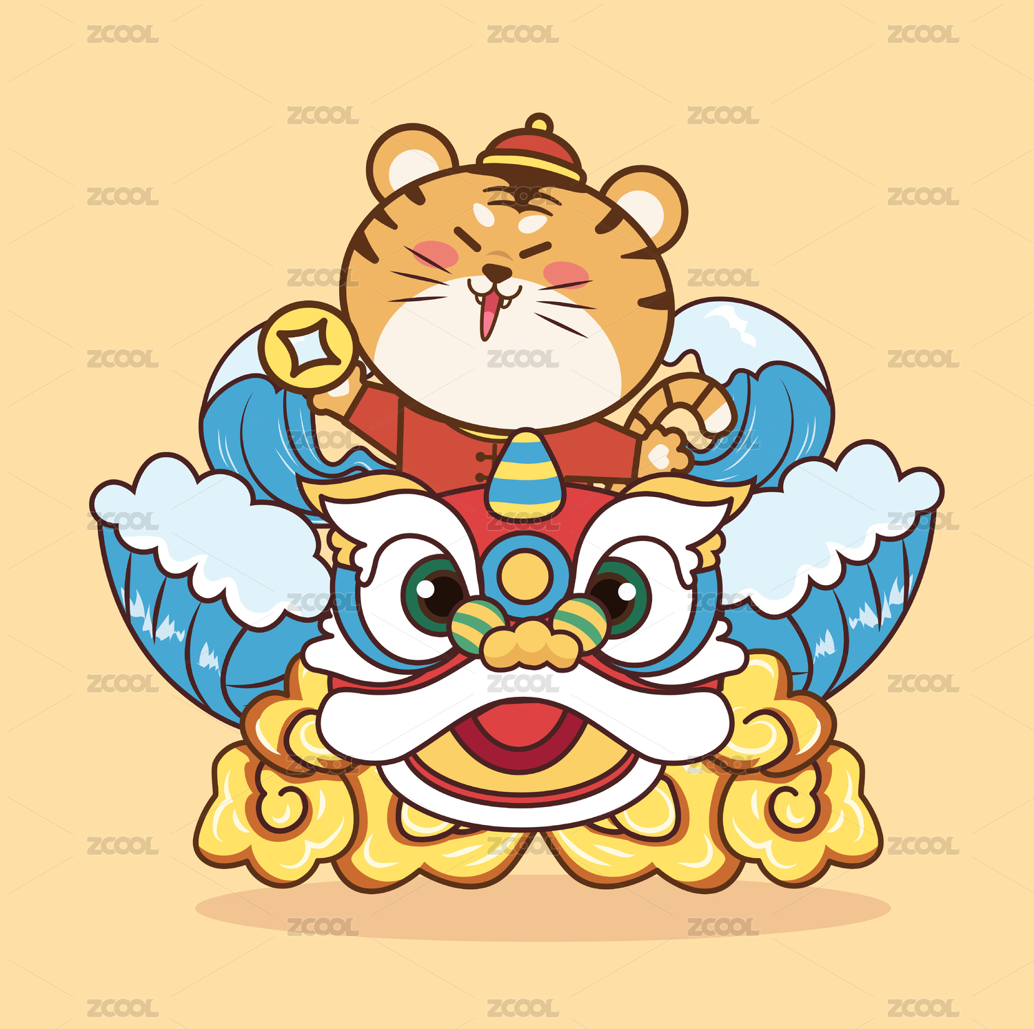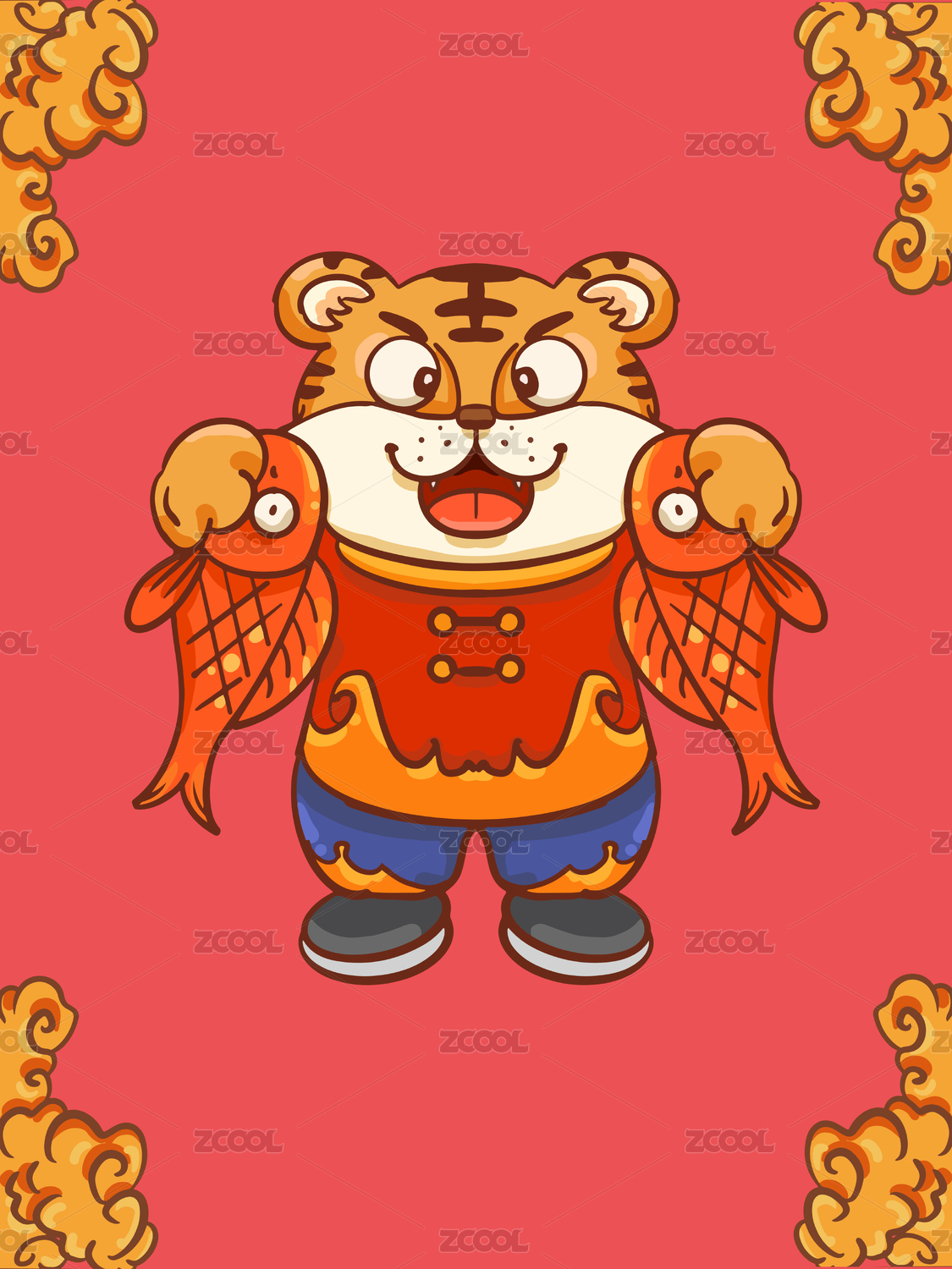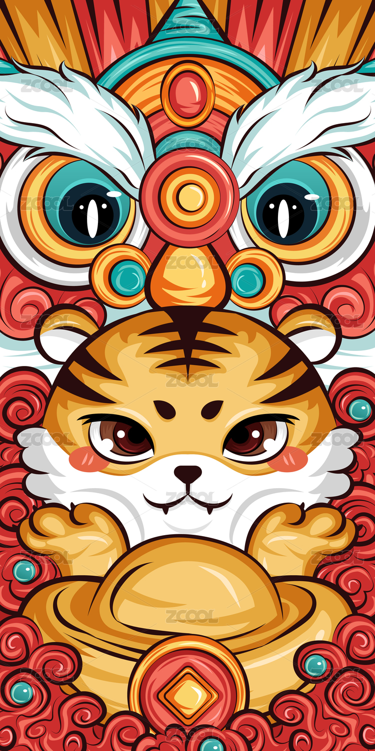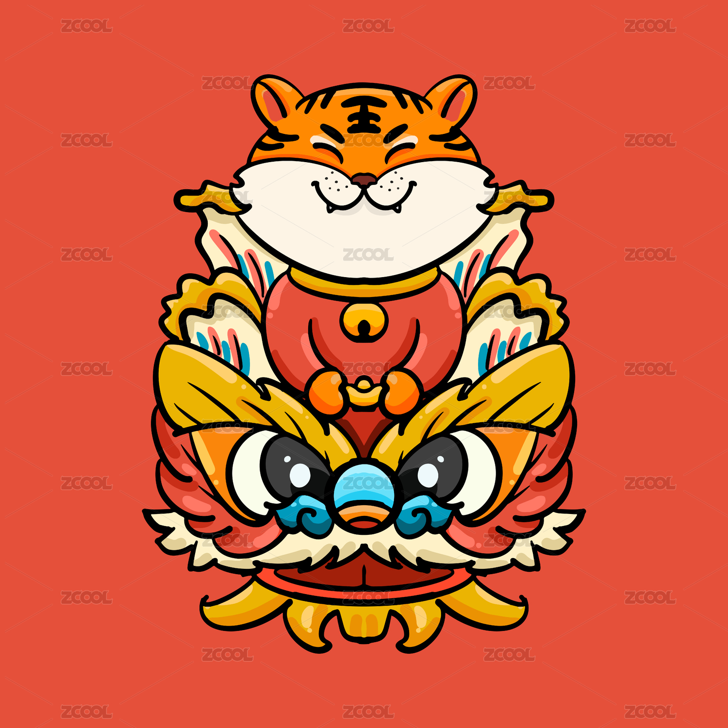 虎年,虎,虎头,老虎,吉祥,卡通,插画,手绘,新年,年货