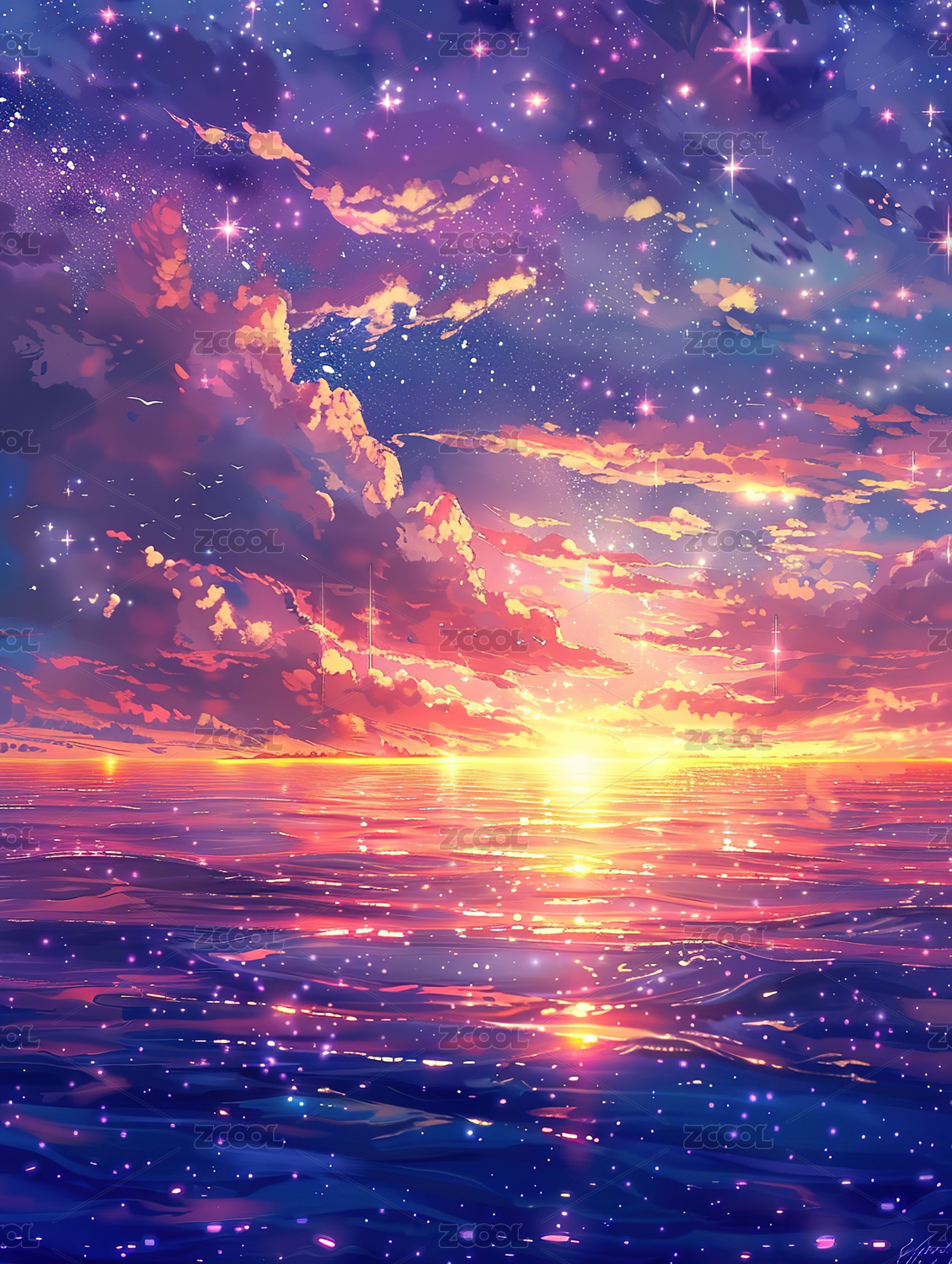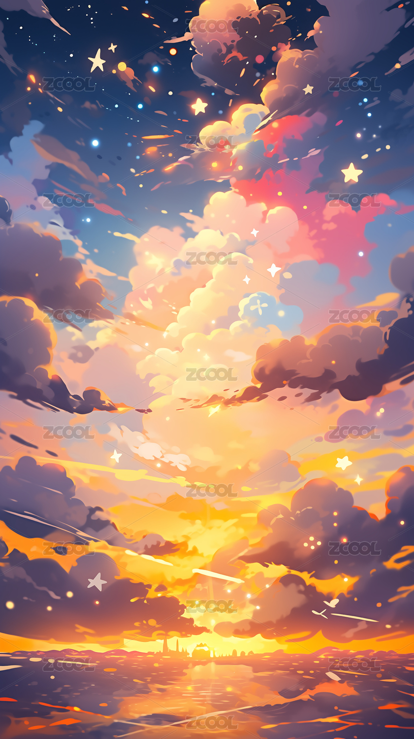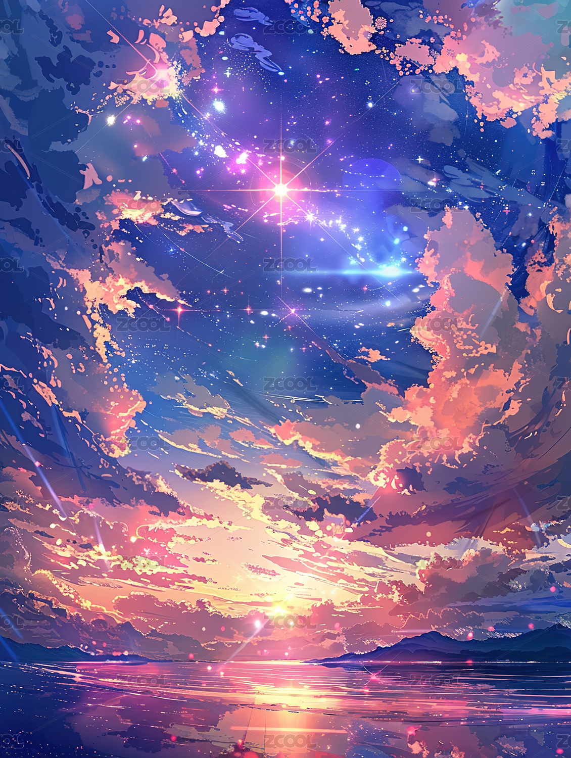 天空,动漫,背景,星空,夜空,卡通,插画,手绘,美丽,环境