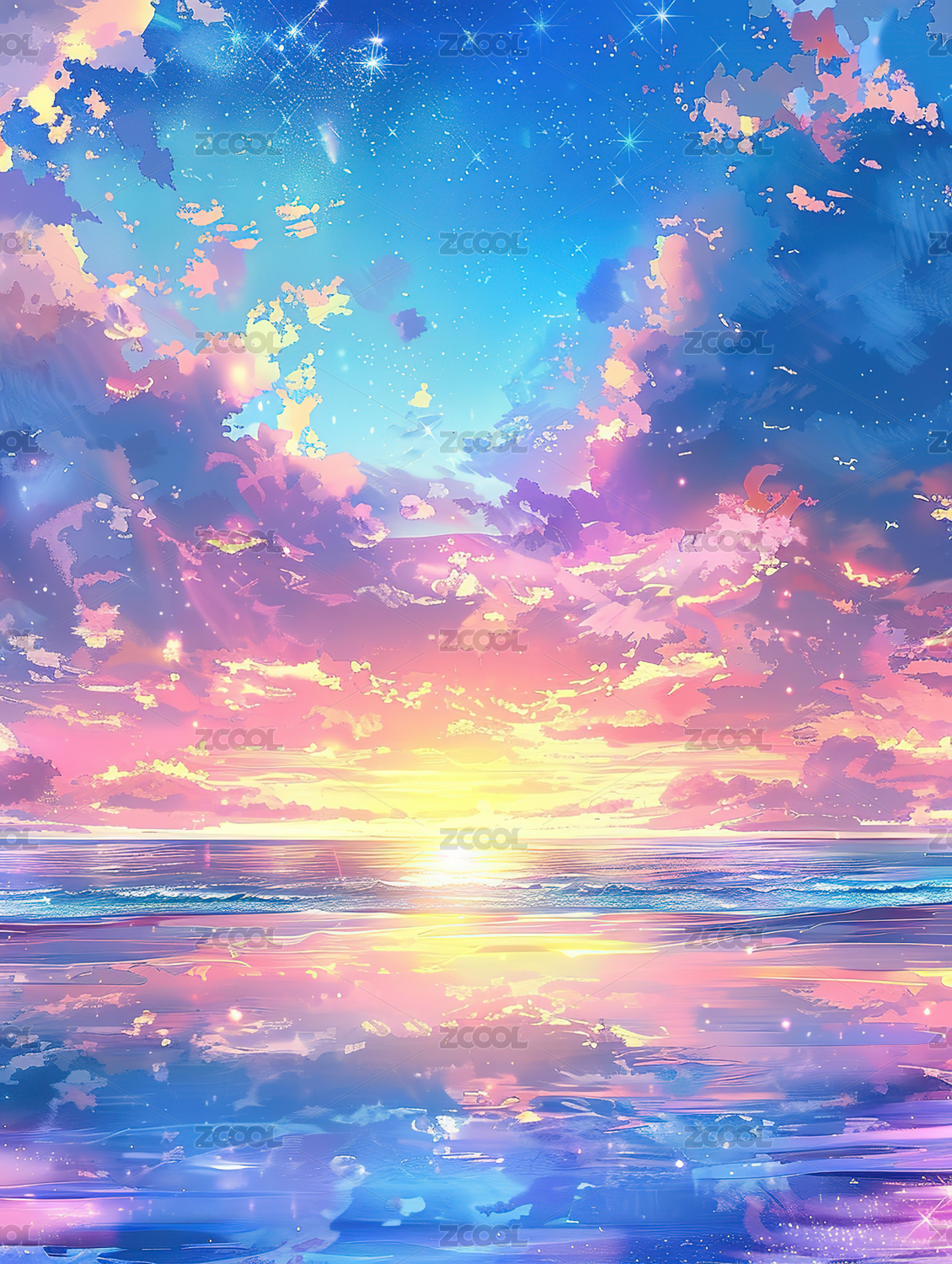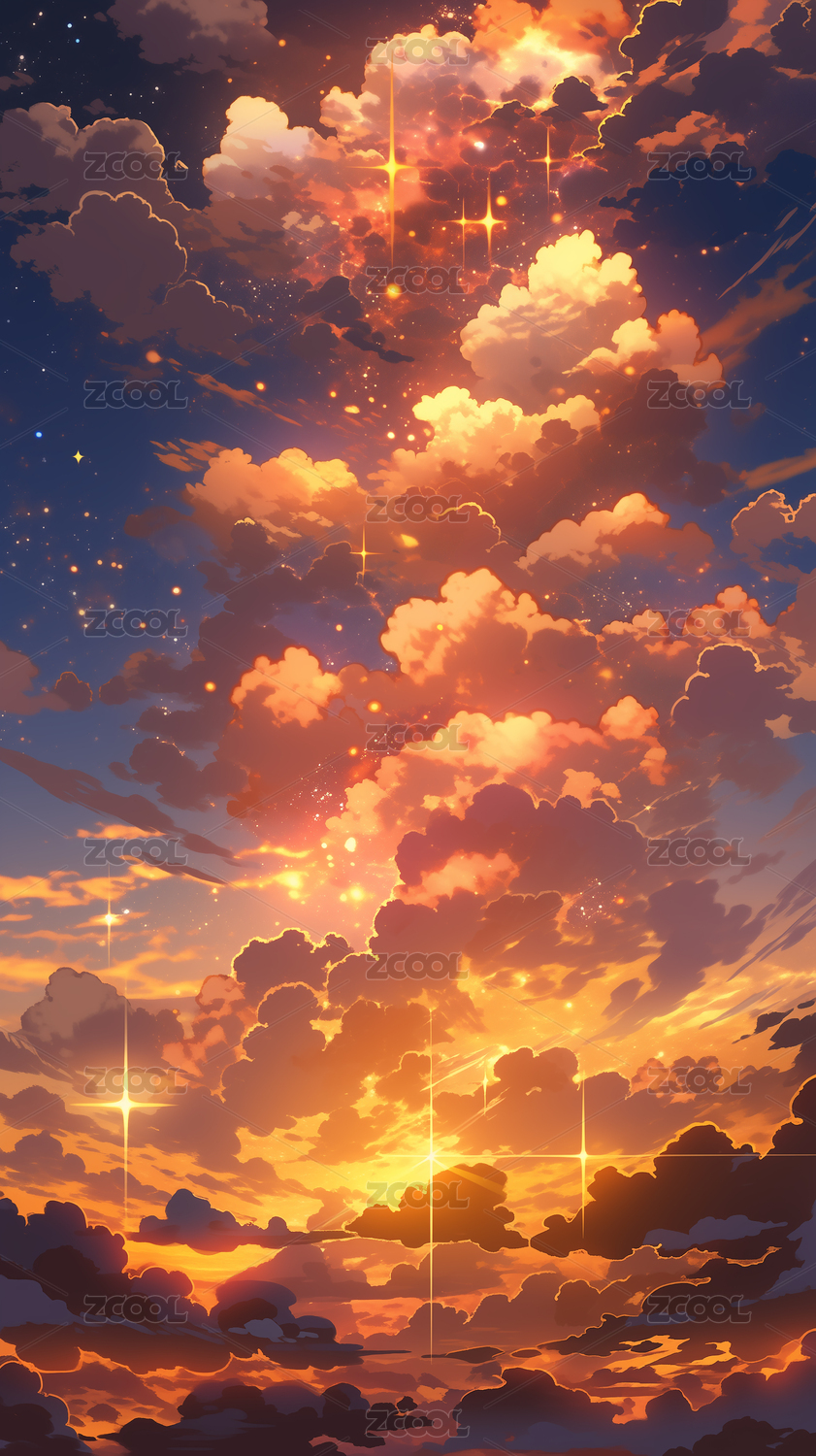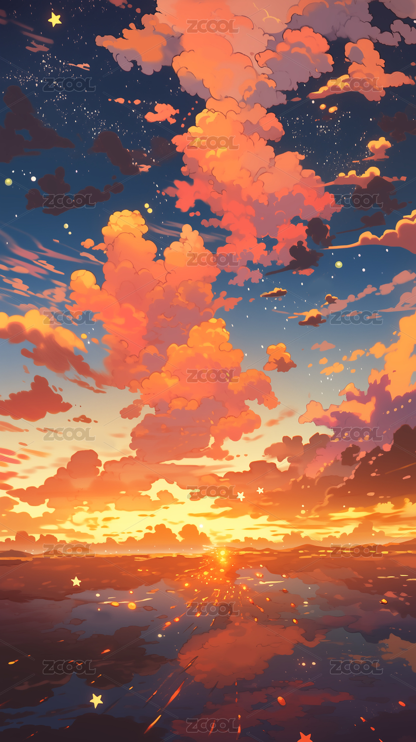 天空,动漫,背景,星空,夜空,卡通,插画,手绘,美丽,环境