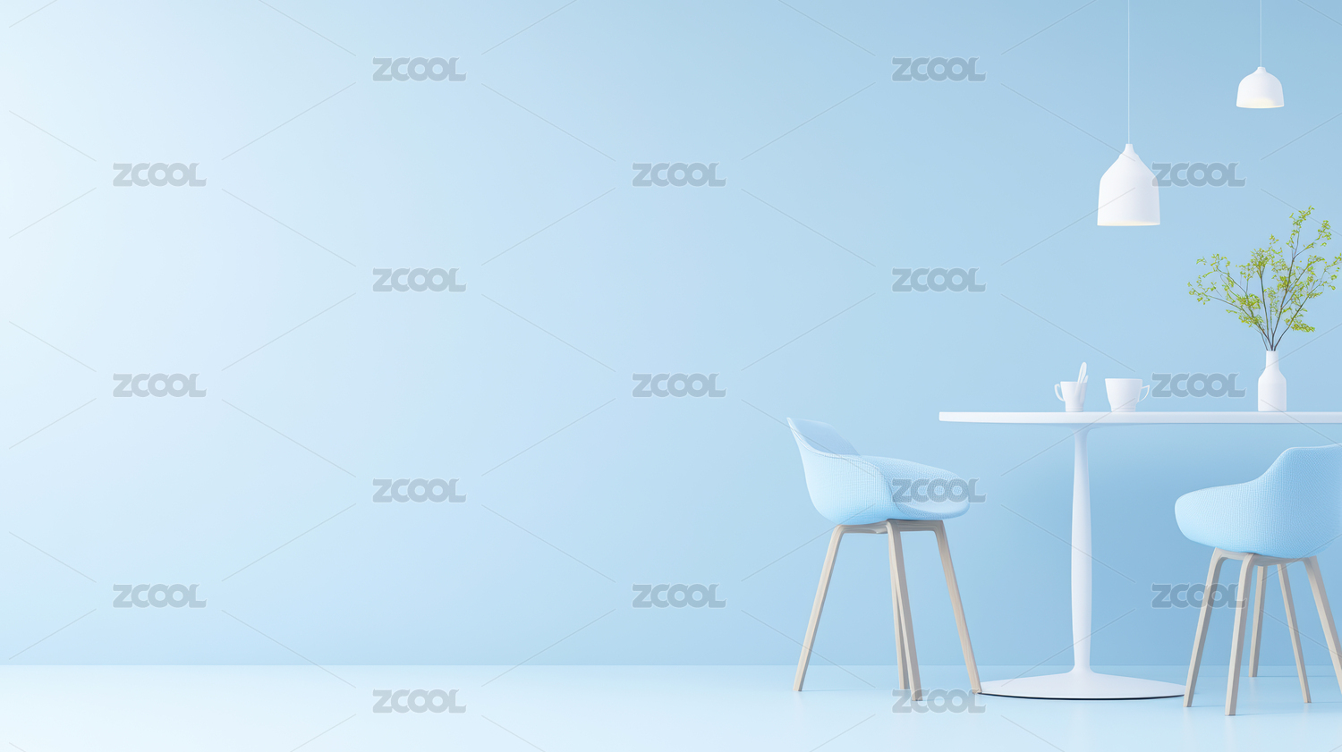 极简风双人餐桌与蓝色背景