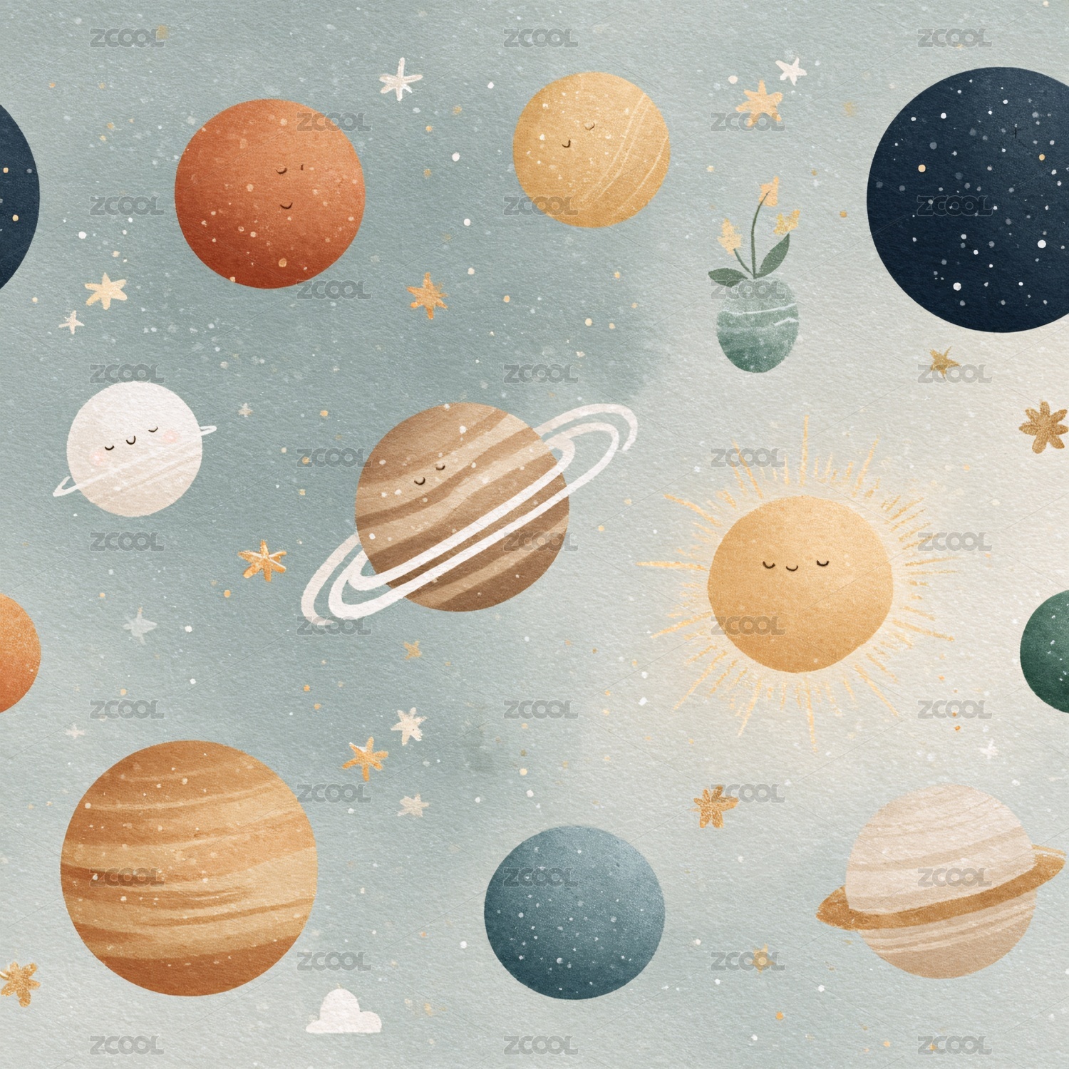 星球,太空,航天,贴纸,潮流,卡通,插画,圆形