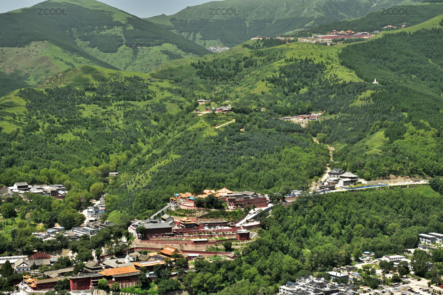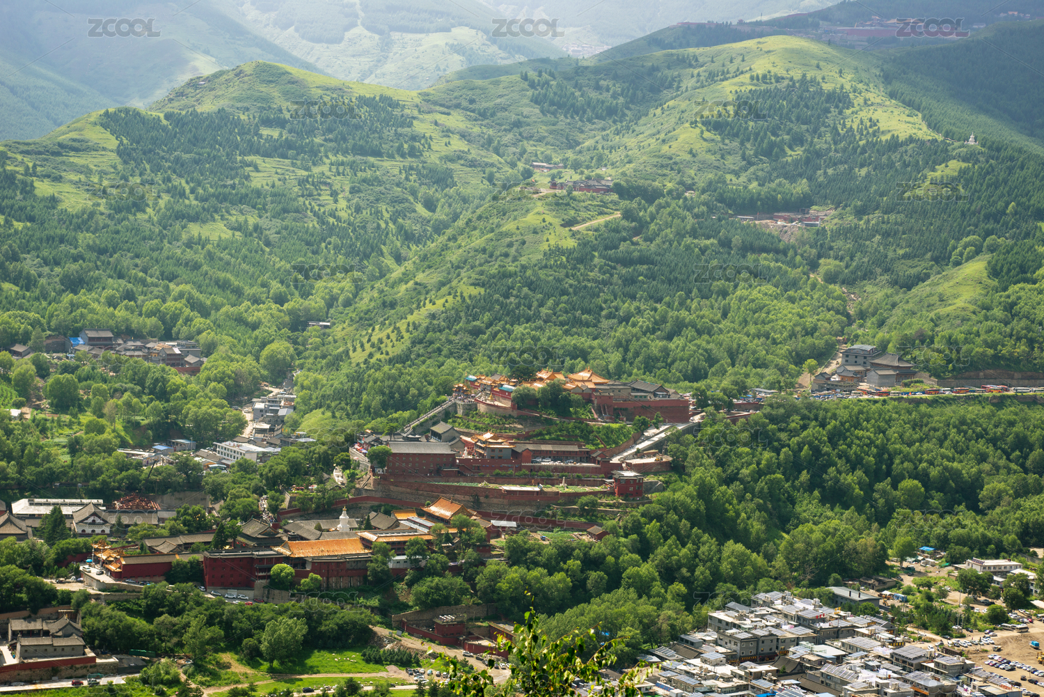 俯瞰五台山台怀镇风景区寺庙群