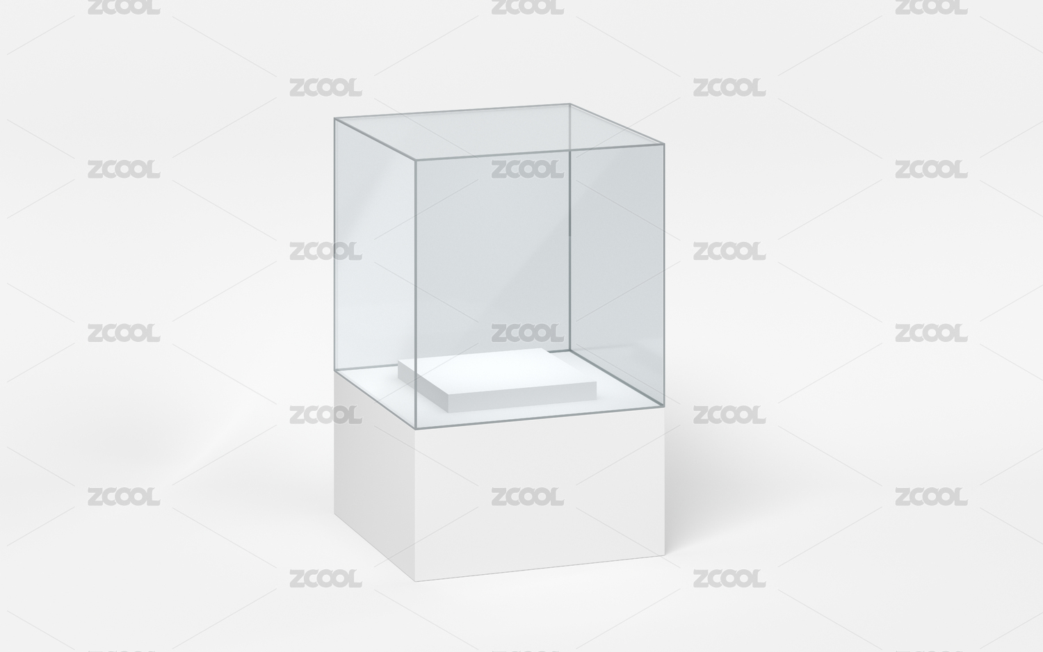 透明展柜中的白色立方体