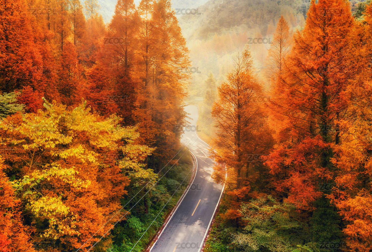 杭州风光,临安风景,森林,树林,公路,道路,金钱松,旅行,风景,秋季