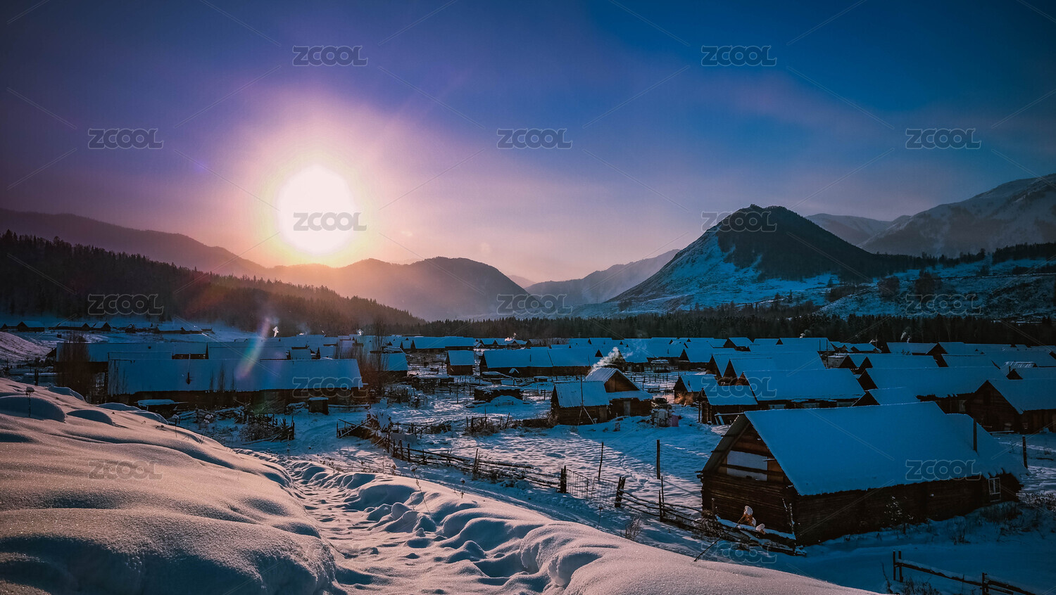 中国,新疆,阿勒泰,禾木,最美村庄,古老村落,图瓦民居,小木屋,冬季,冬景