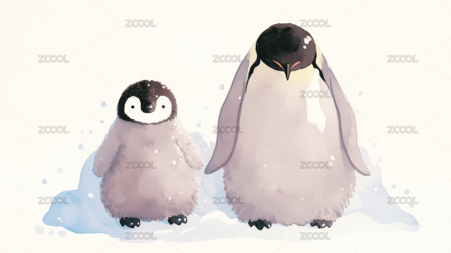 雪中企鹅与幼崽
