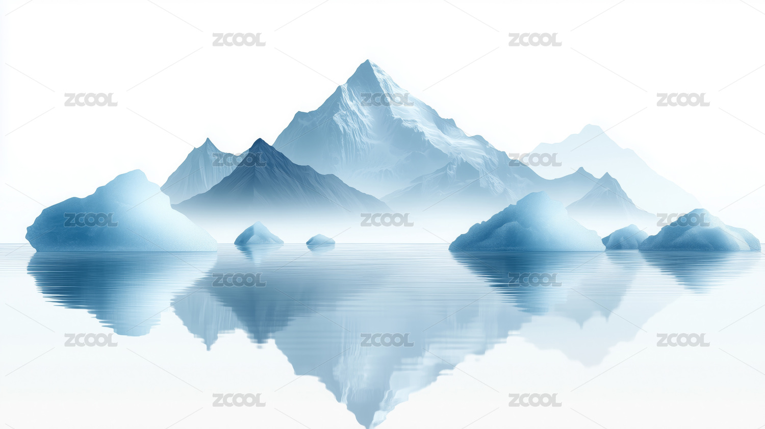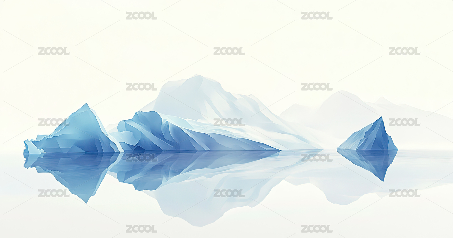 冰山倒影在水面上