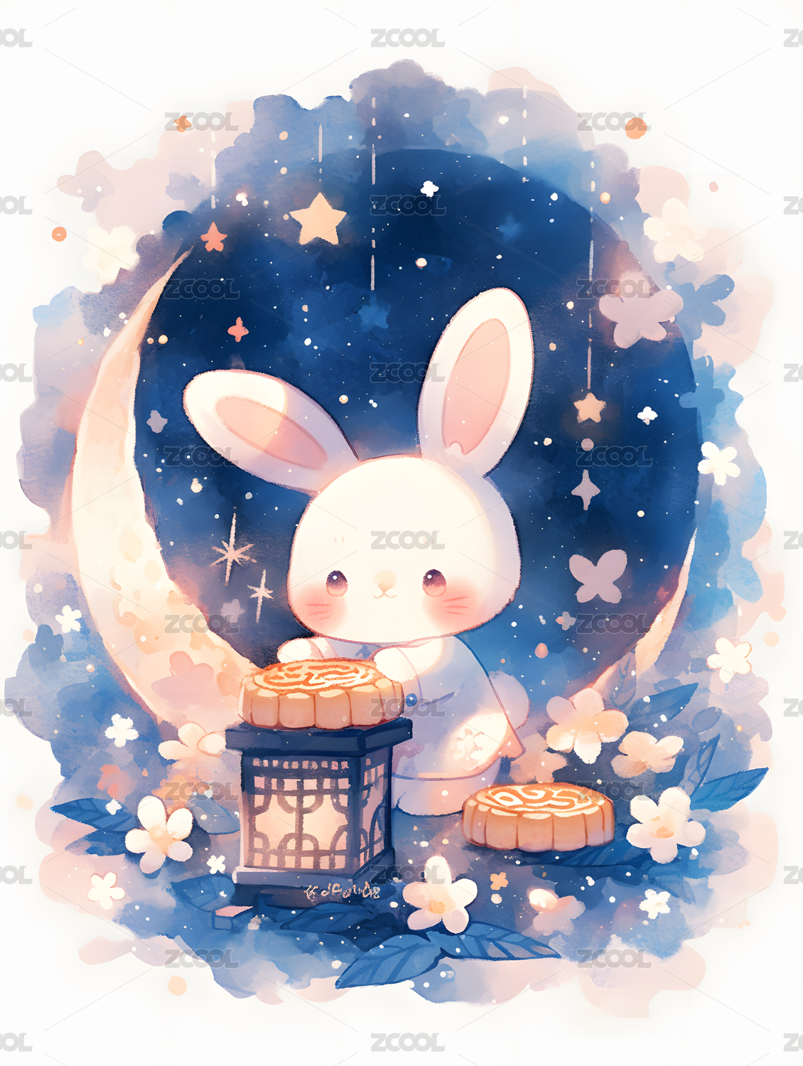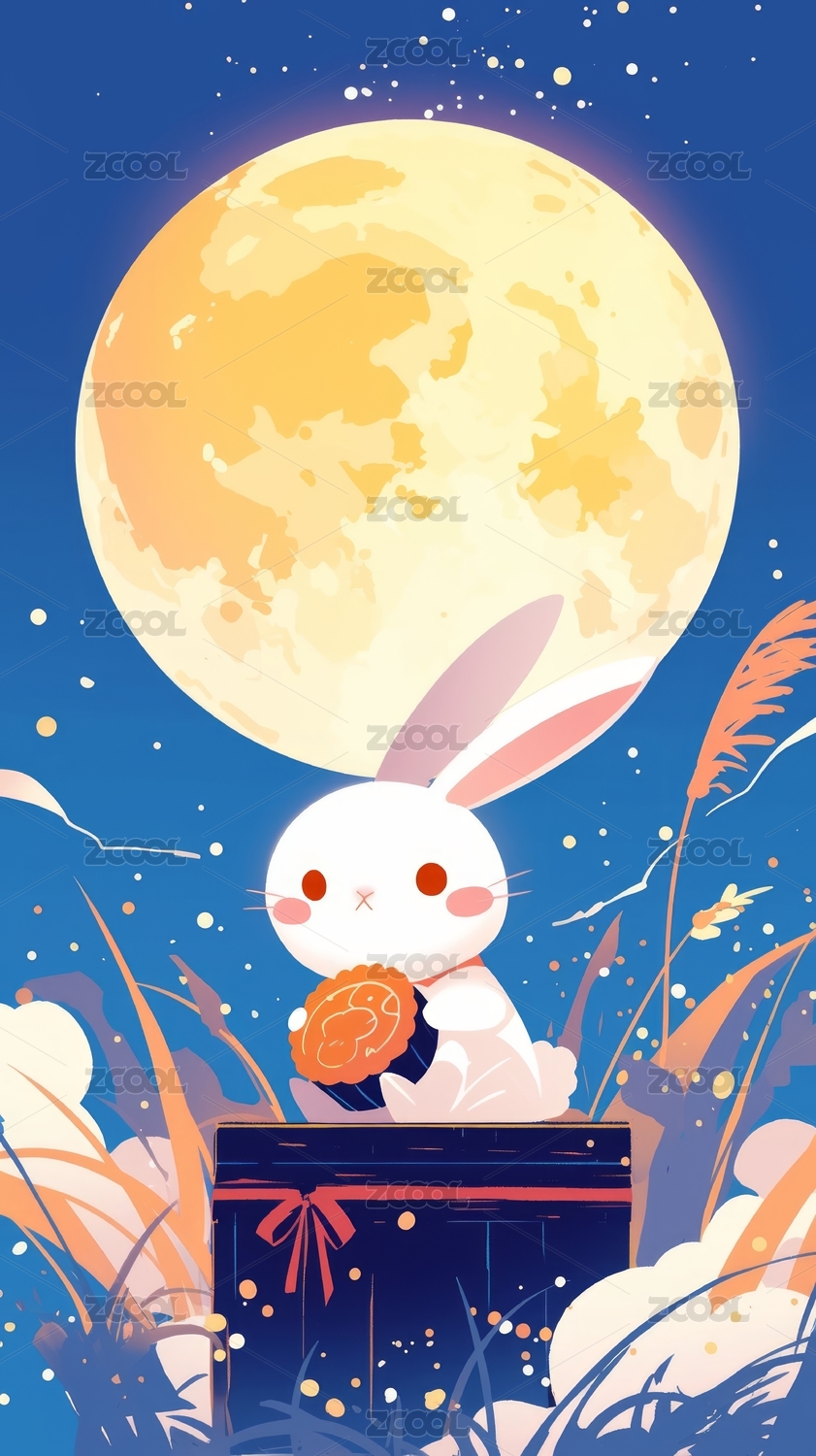 中秋,月亮,兔子,月饼,秋天,中秋节,玉兔,团聚,AIGC202403