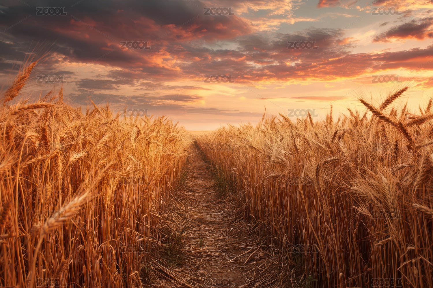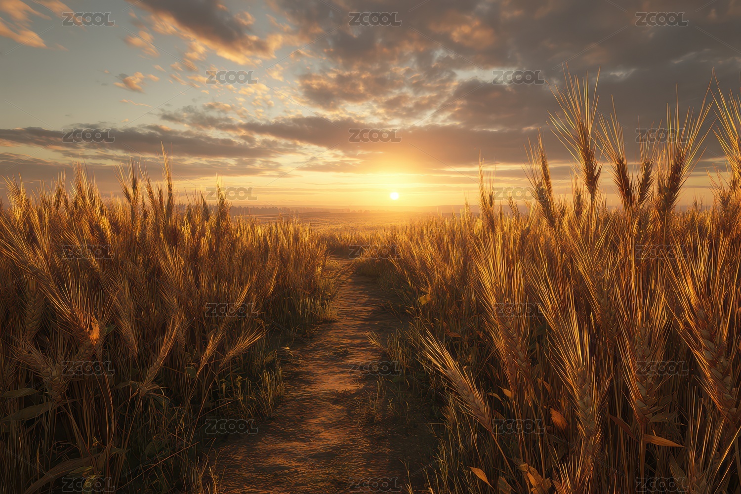 麦田,金色,特写,路,小路,麦穗,C4D软件,麦子,秋天,收获