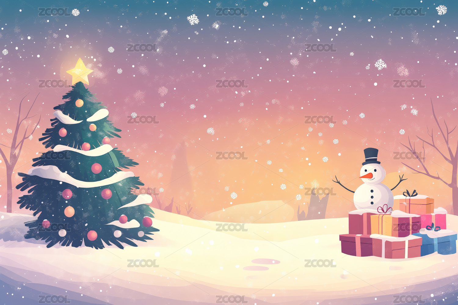 卡通圣诞节圣诞礼物圣诞树雪人插画