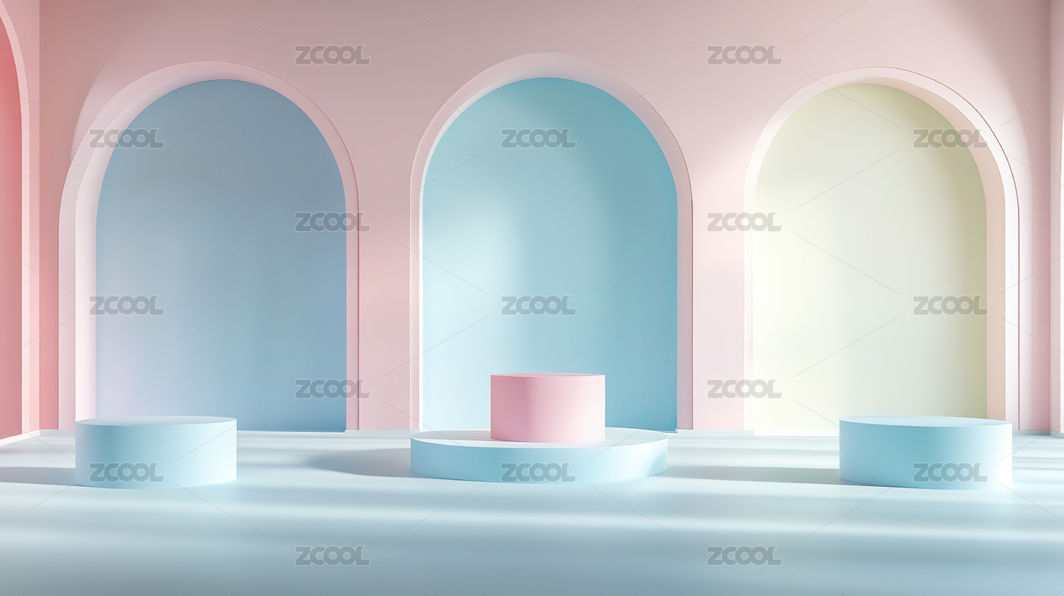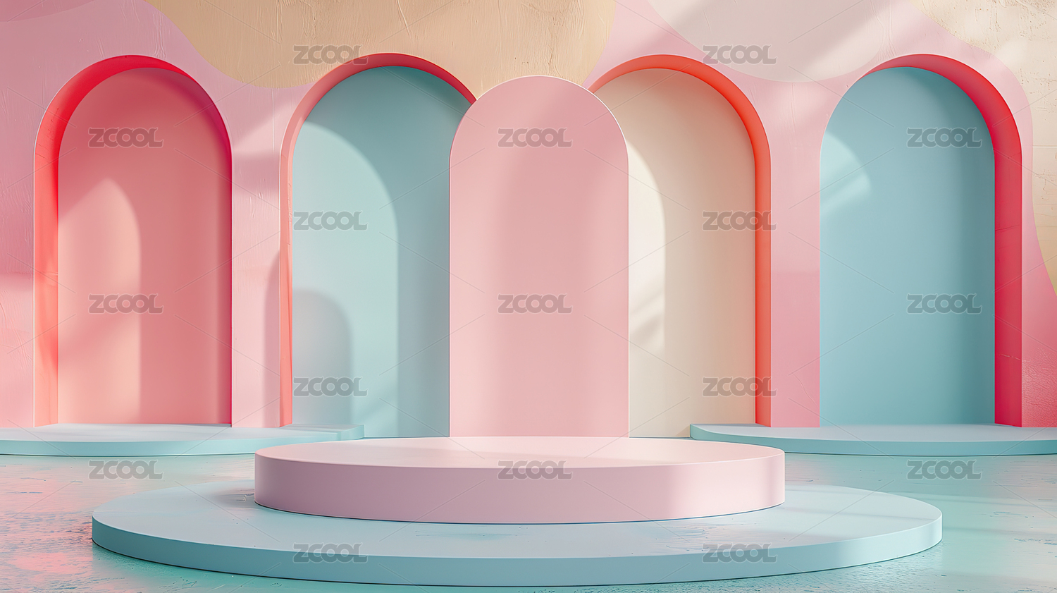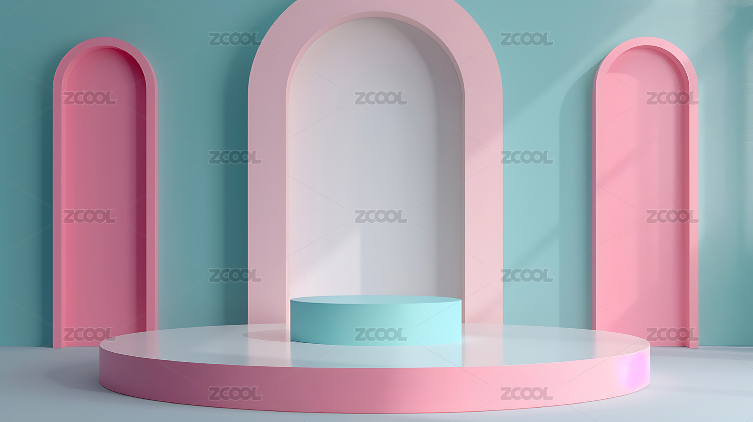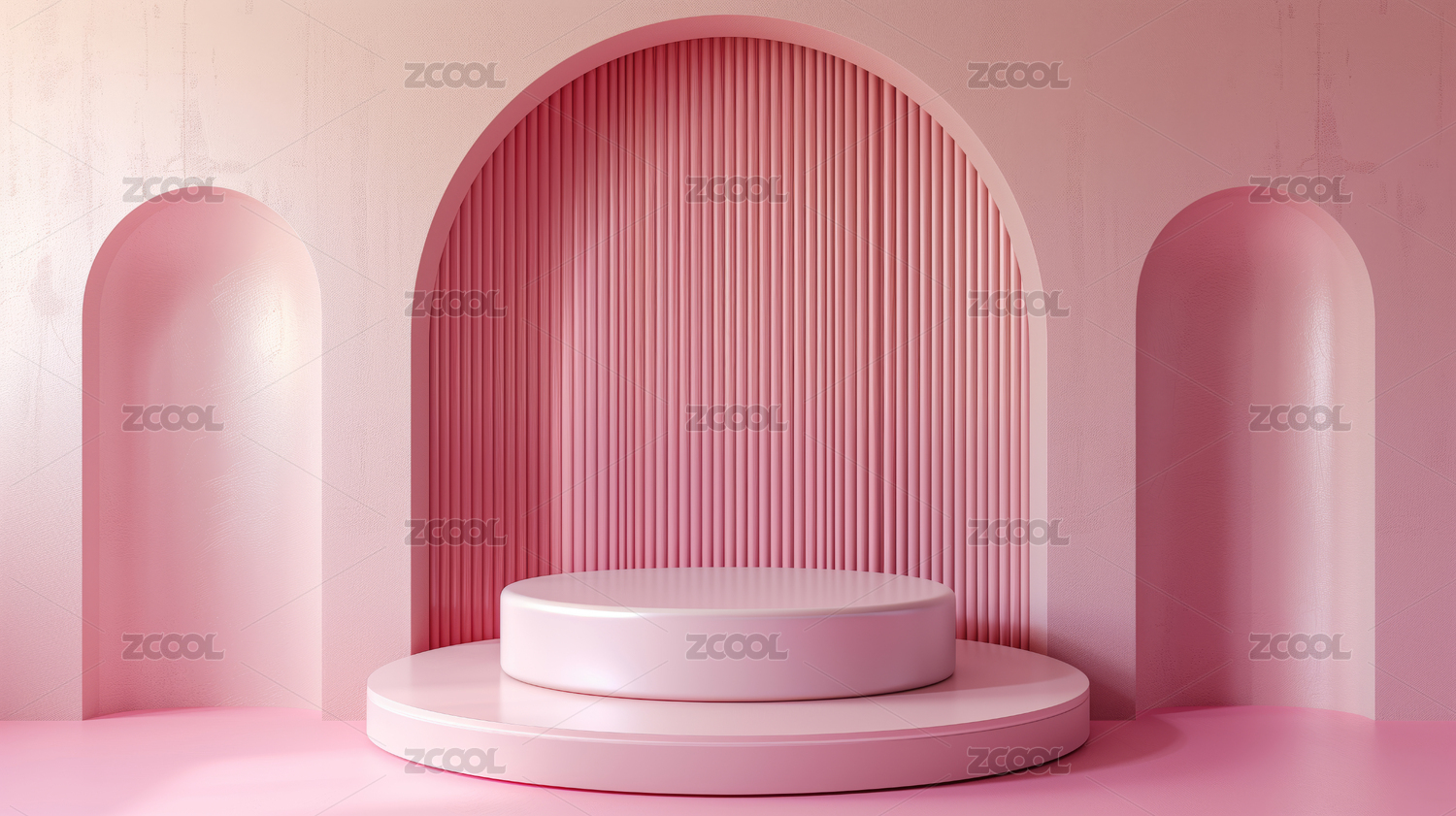 3D粉色小清新圆形拱门电商产品展台