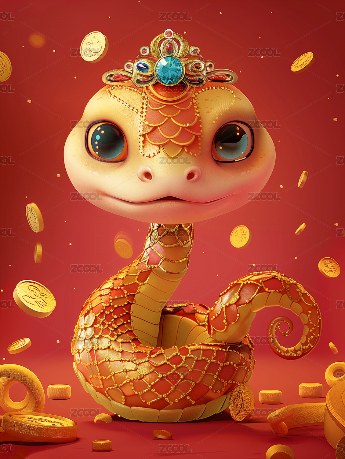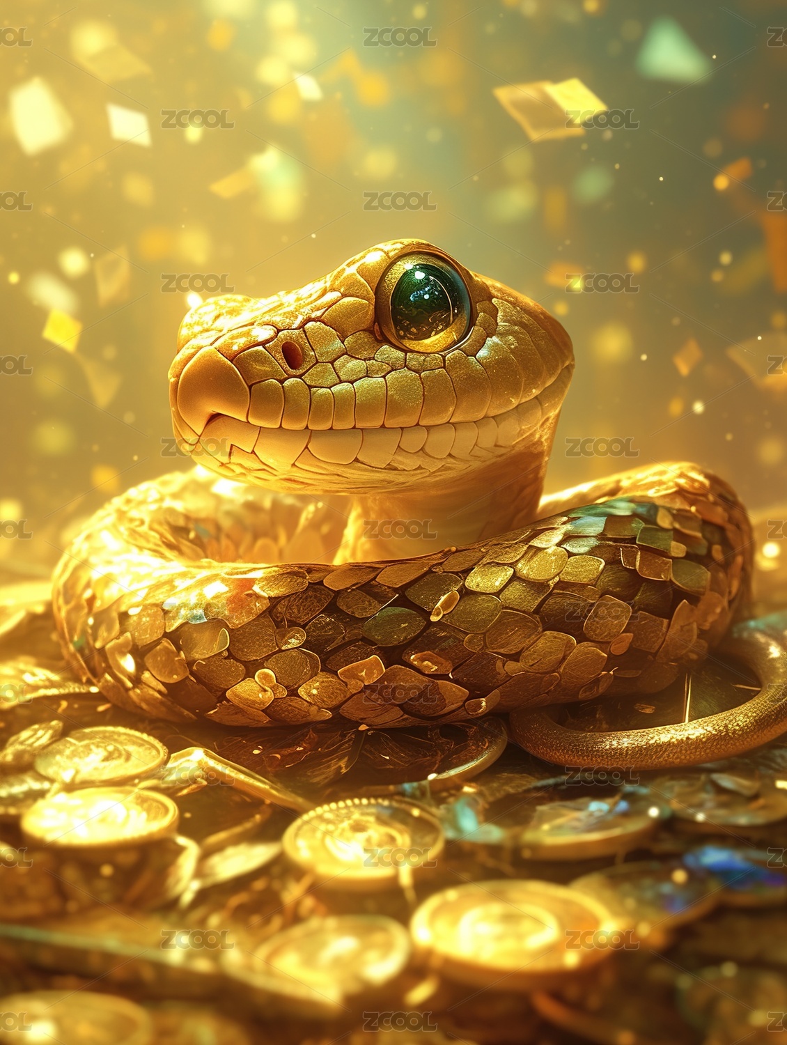 蛇,蛇年,金币,金蛇,财神,纯金,新年,春节