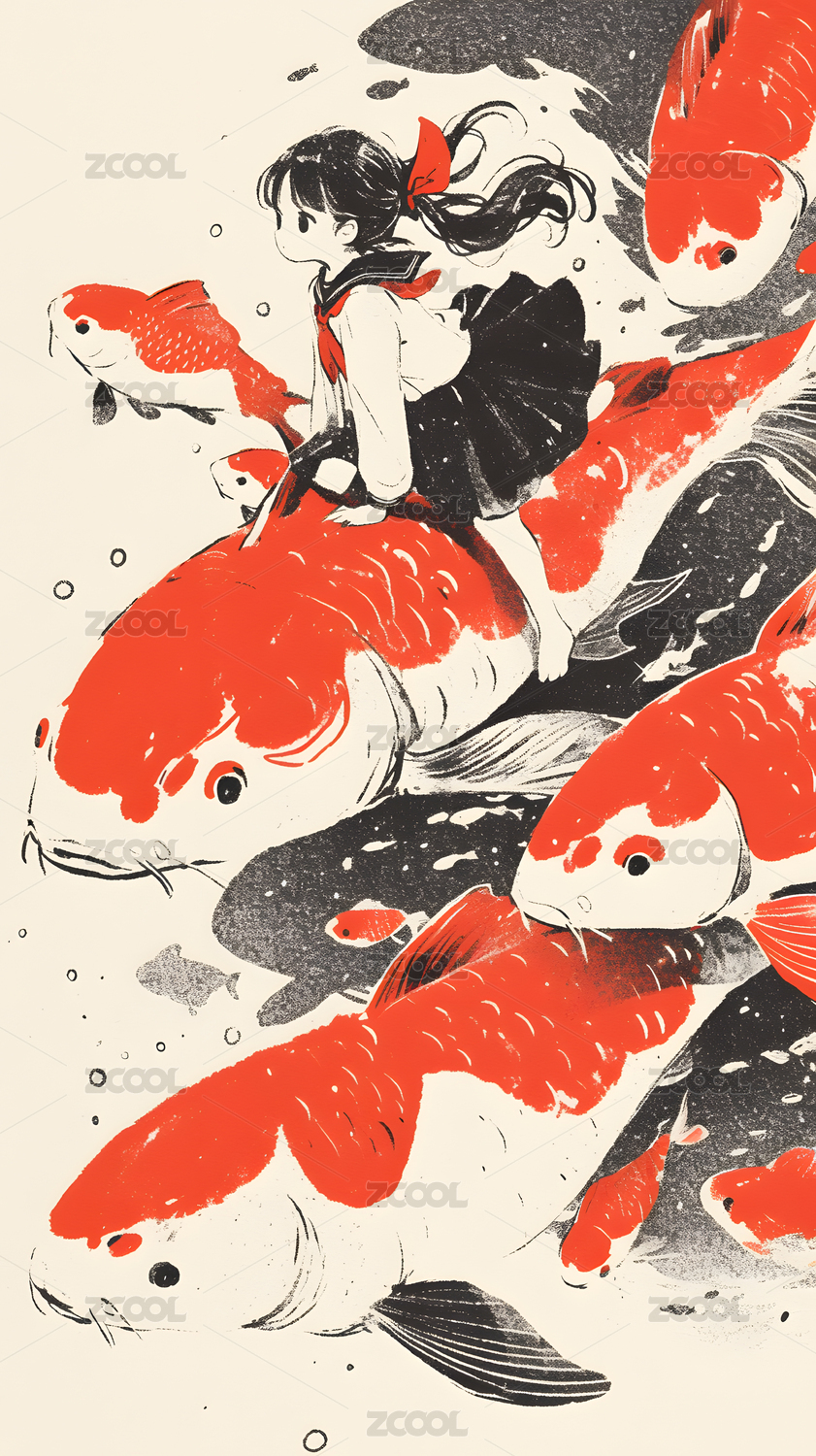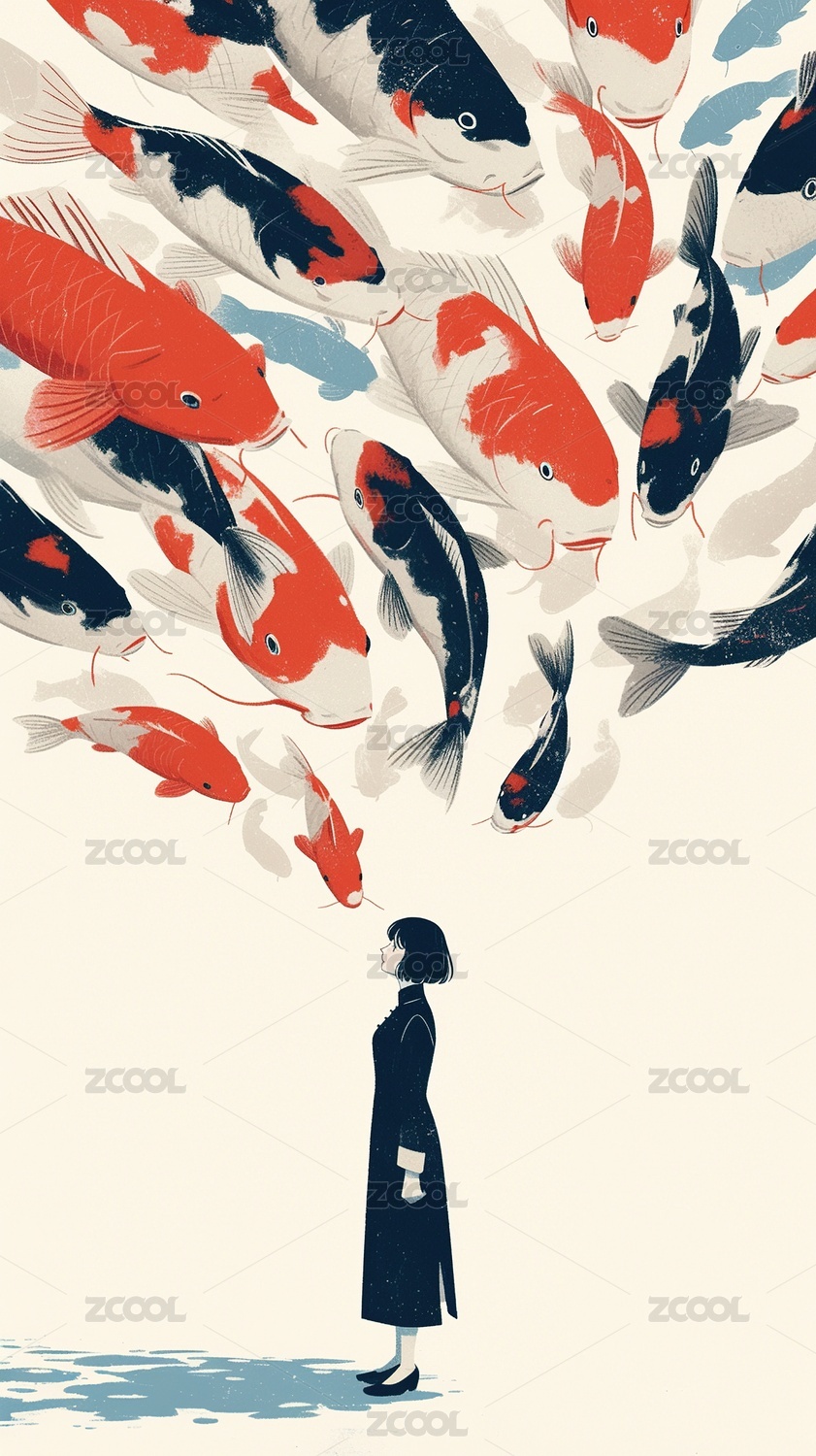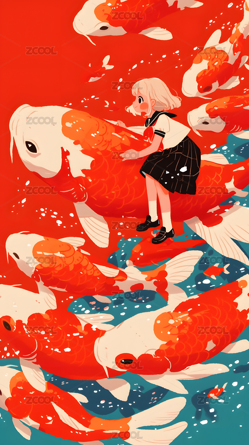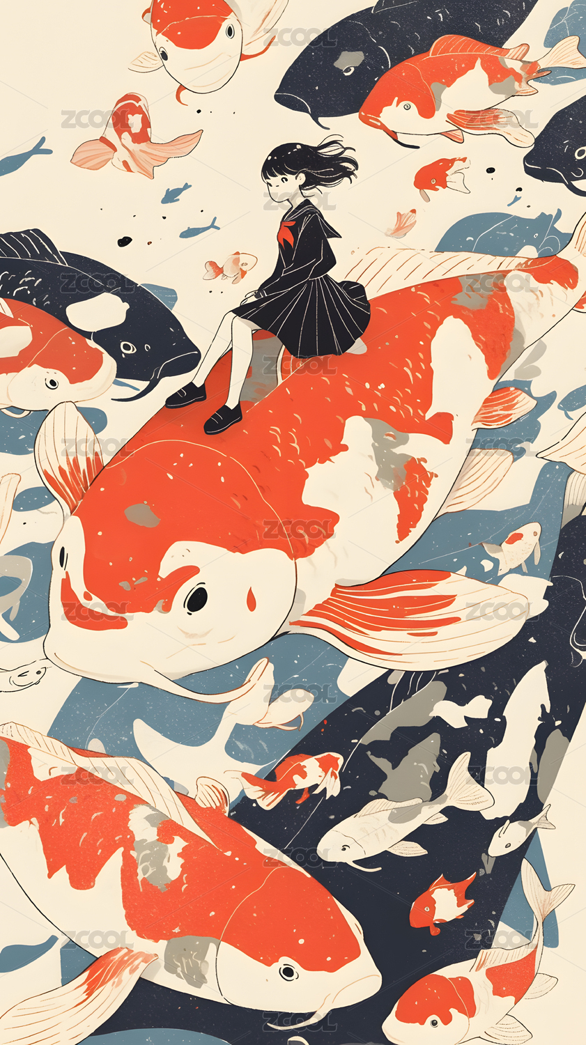 插画,女人,美女,中国文化,汉服,国风,历史服装,古代,肖像,鲤鱼