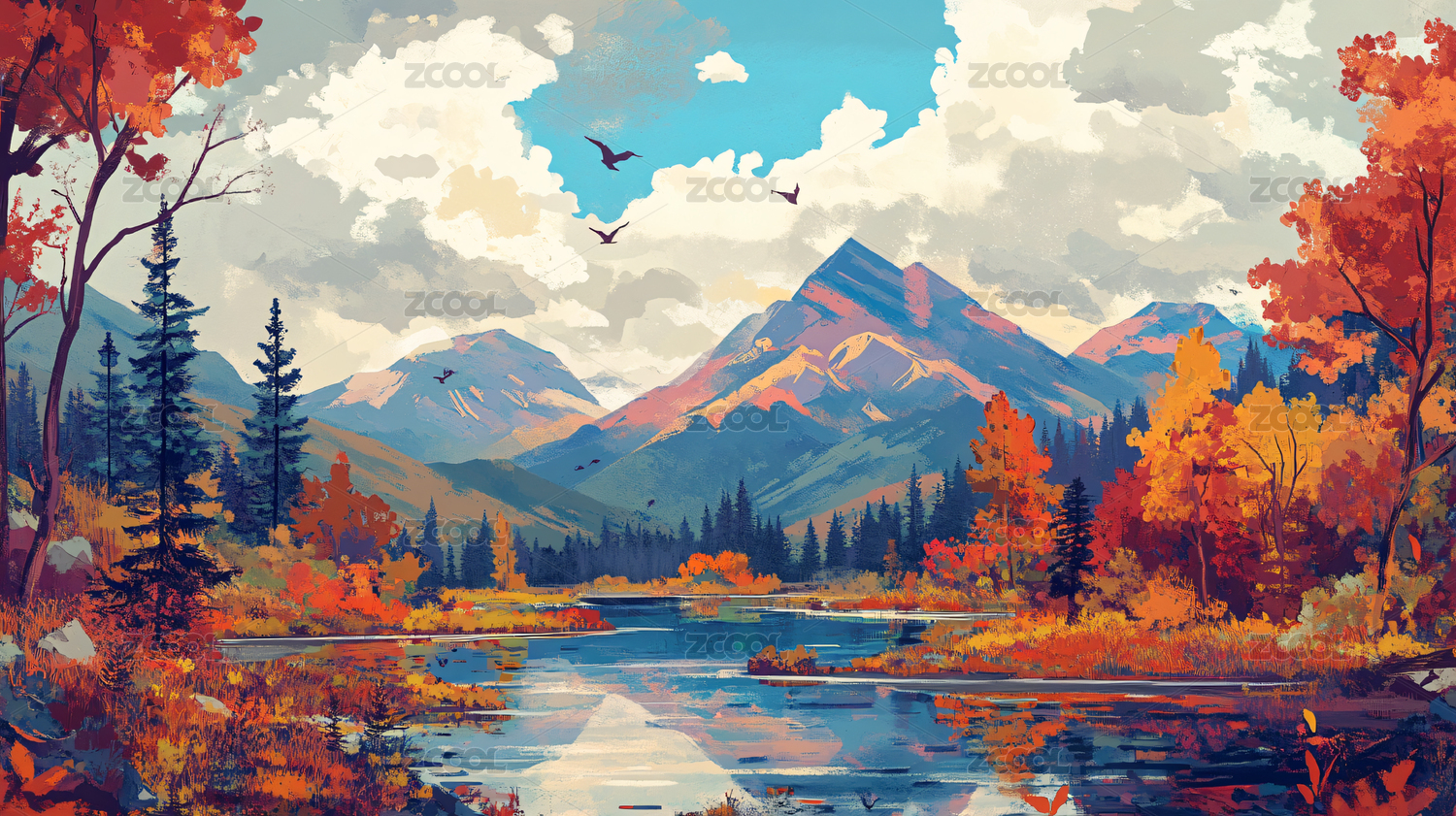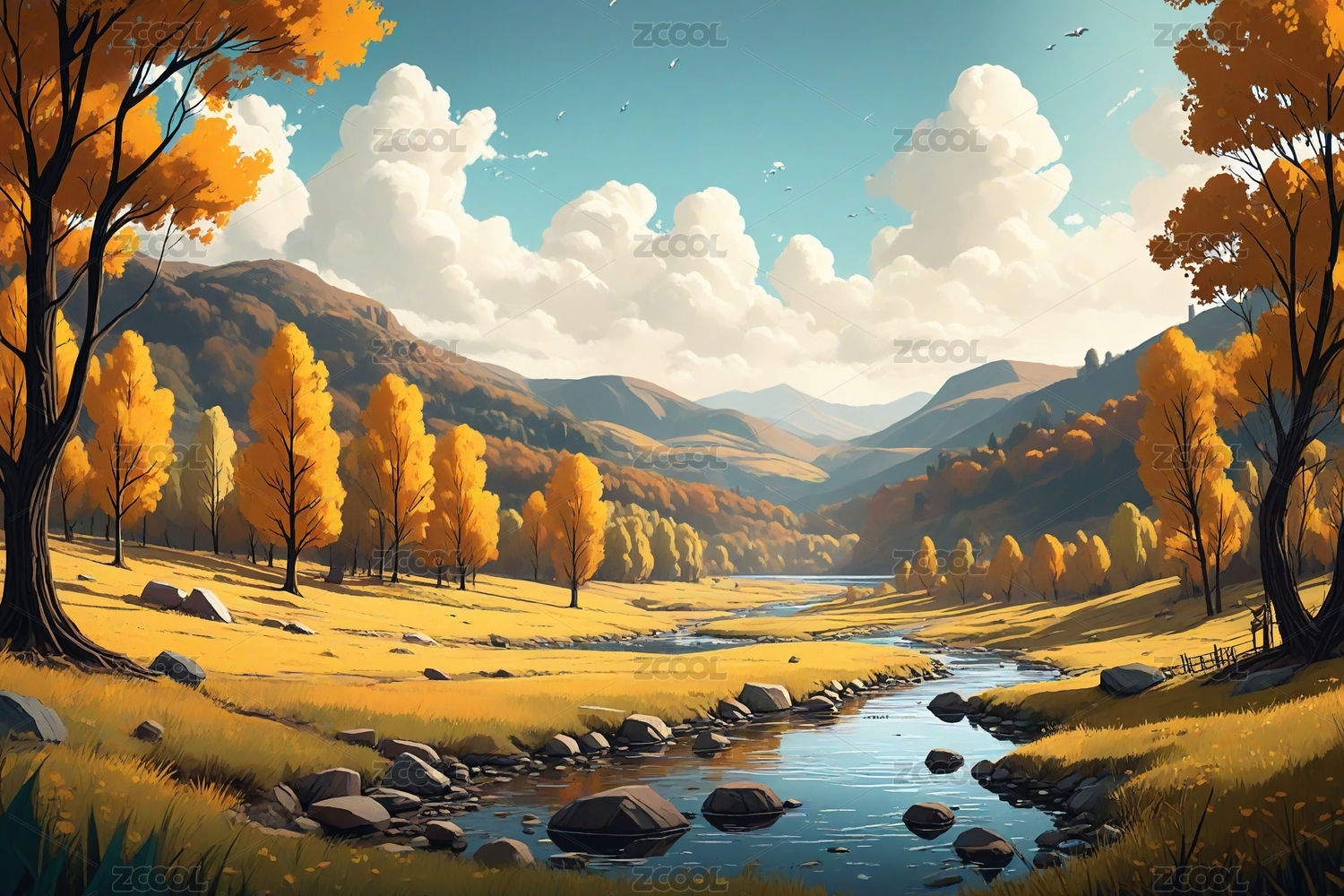 秋天,白桦林,秋分,风景,秋季,落叶,小河,山林