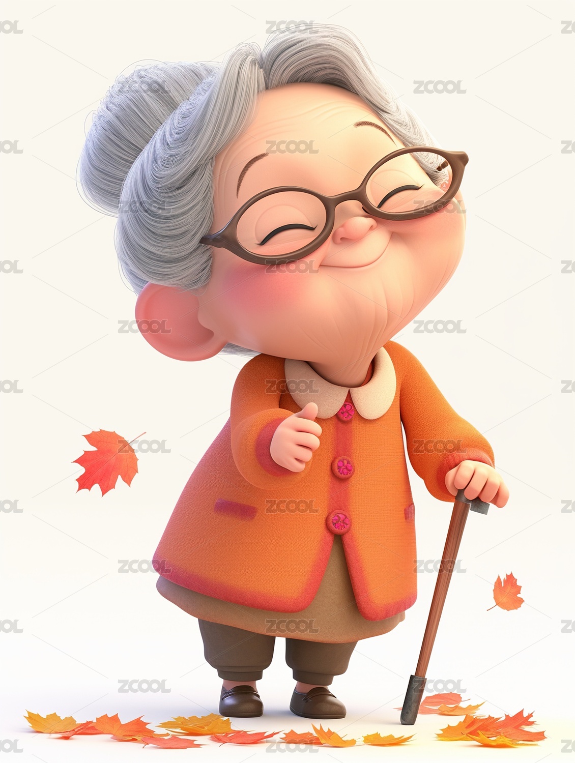 开心白发老人可爱的3D人物Q版卡通风格
