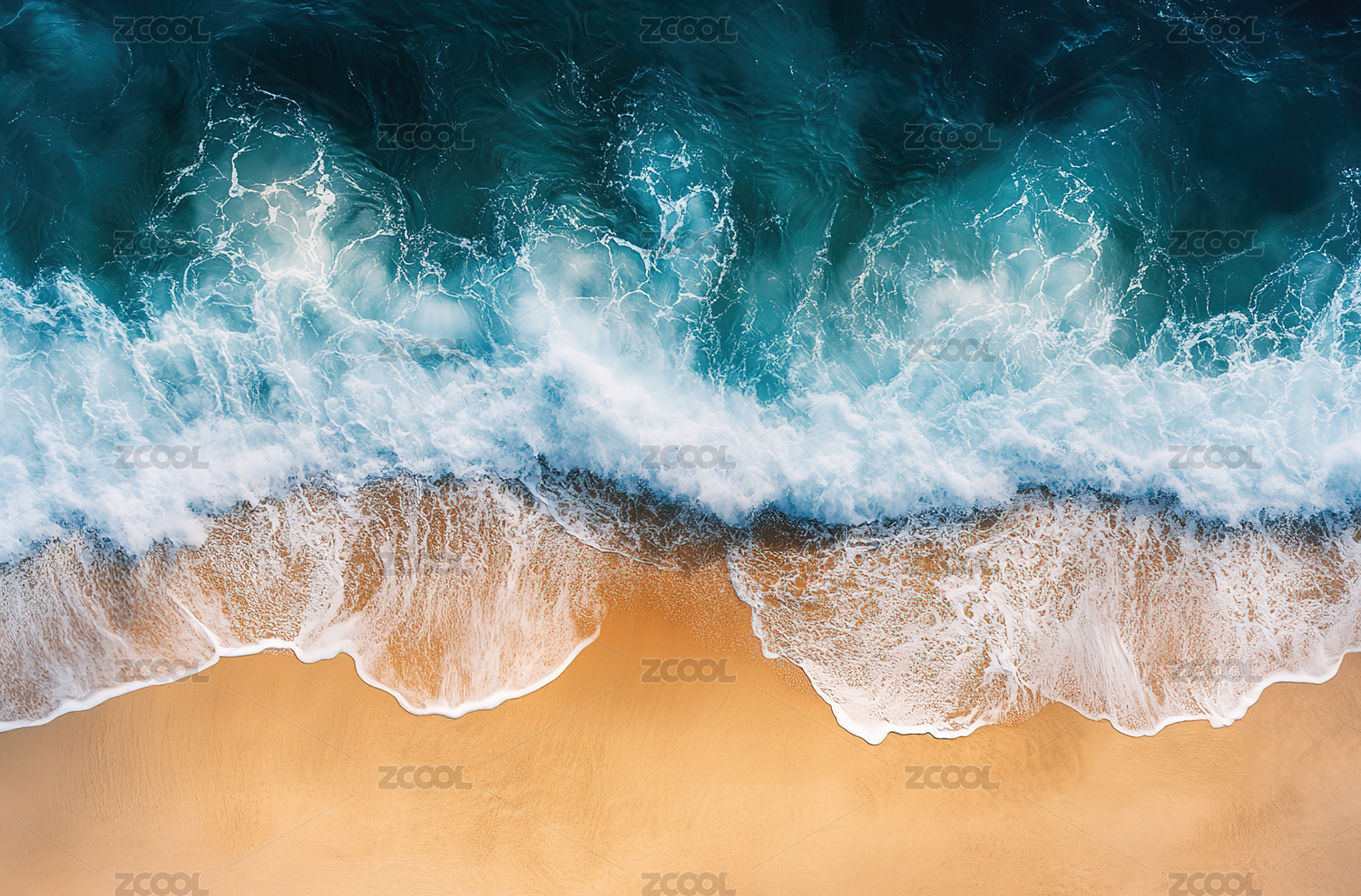 海浪拍打浅色沙滩的高空图像